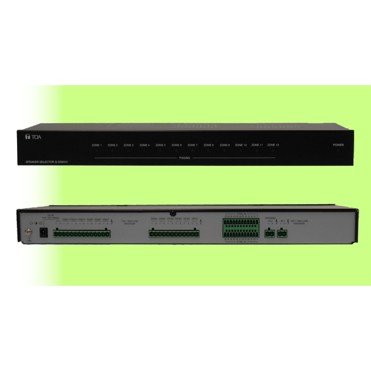 The TOA Q-SS9012PS is a speaker selector used in conjunction with 9000M2 Series mixer amplifiers or other paging equipment. It selectively distributes each of 2 amplified inputs of the same 12 output zones by the status of corresponding contact closure input. 12 contact inputs and 12 speaker outputs. Power amp input is split into 12 zones with activation via contact closure. The Q-SS9012PS Multi-Zone Speaker Selector has 2 amplifier inputs and 12 individual relay switches to select the amplifier connected to each 12 speaker line/zone. This allows up to 12 zones for paging and BGM distribution with a dual channel amplifier or simple paging system with only a one channel amplifier. TOA's new concept offers a real cost effective multi-zone paging system.
