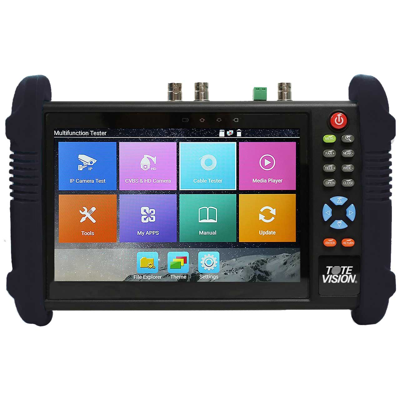 The ToteVision LED-715-4KIP is a 4K, 7 inch, Ruggedized, IP/Analog Camera Field Test Monitor with a Digital Multimeter and a TDR BNC Port. This multi-function camera test monitor is designed to assist in the installation and maintenance of both IP and analog cameras including TVI, CVI, AHD, SDI, and 4K formats. The LED-715-4KIP field test monitor supports HD-SDI/EX-SDI 1080p resolution @30fps (50/60Hz) along with HDMI and more making it the ultimate tool for the video installation professional.
