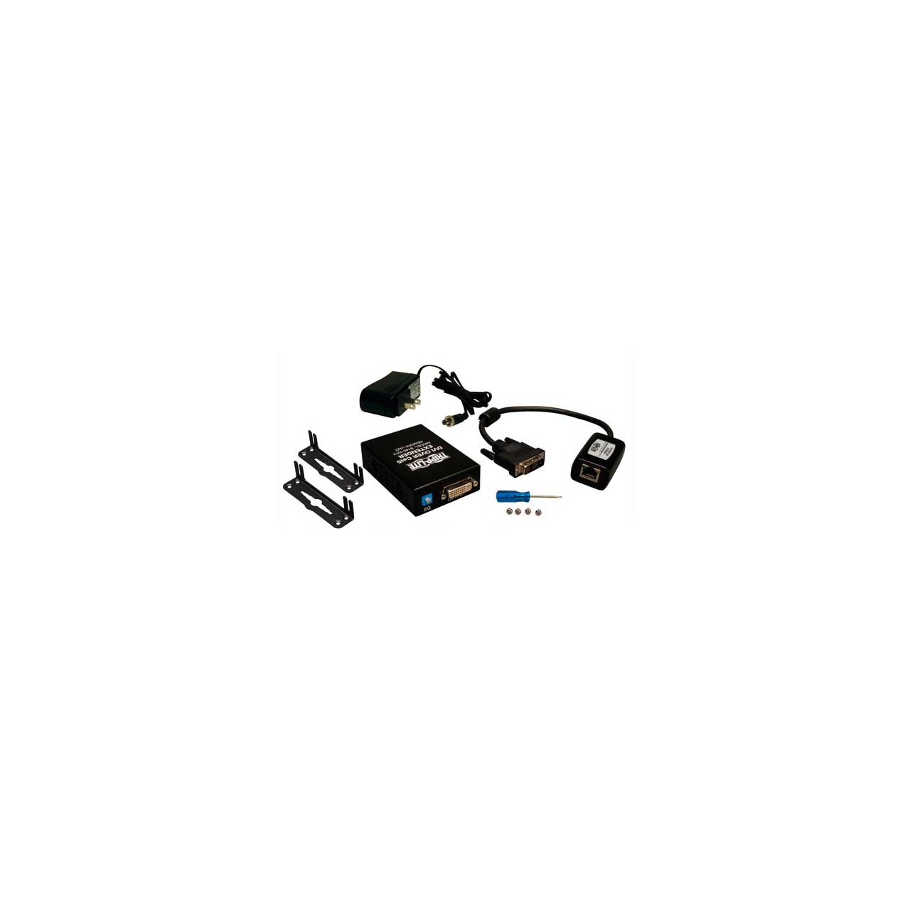 Tripp Lite's B140-101X DVI over Cat5 Active Extender Kit is the perfect solution for those who need to extend a DVI-D Single-Link signal up to 200 ft. from the source. When using 24Awg, solid wire Cat5e/6 cabling (Tripp Lite N202-Series), the B140-101X can extend a 1024 x 768 (60Hz) signal up to 200 ft., or a 1920 x 1080 (60Hz) up to 150 ft.. Installation is quick and easy: Simply attach the local unit to your DVI source, attach the remote unit to your display, and then connect a Cat5e/6 patch cable between the two. If necessary, use the built-in Equalization setting on the remote unit to adjust the video image. Mounting hardware is included that allows the remote unit to be wallmounted, rackmounted or pole-mounted. Compliant with the Federal Trade Agreements Act (TAA) for GSA Schedule purchases.
