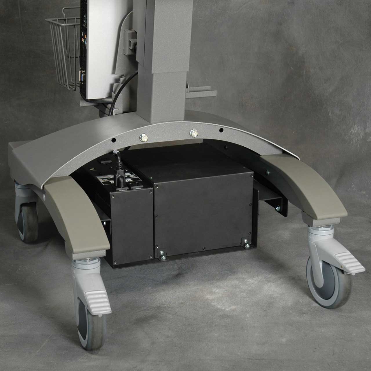 Tripp Lite's HCRK Medical-Grade Mobile Power Retrofit Kit provides UL 60601-1 compliance (a required patient shock-prevention measure) for all connected mobile electronic devices. The Mobile Power Retrofit Kit includes everything needed to add AC power to medical carts. The kit's power supply features an isolation transformer that reduces the cumulative shock potential of connected equipment, helping to ensure UL 60601-1 compliance. The included 90 amp-hour battery module provides long-lasting mobile power. Included The Mobile Power Retrofit Kit also includes a remote user interface (RUI), mounting hardware and standard cabling.Tripp Lite's Medical-Grade Mobile Power Retrofit Kit is fully compatible with most popular carts by AFC, Anthro, Datalux, GCX, Hergo, Humanscale, Jaco, Knurr, Stinger and more.