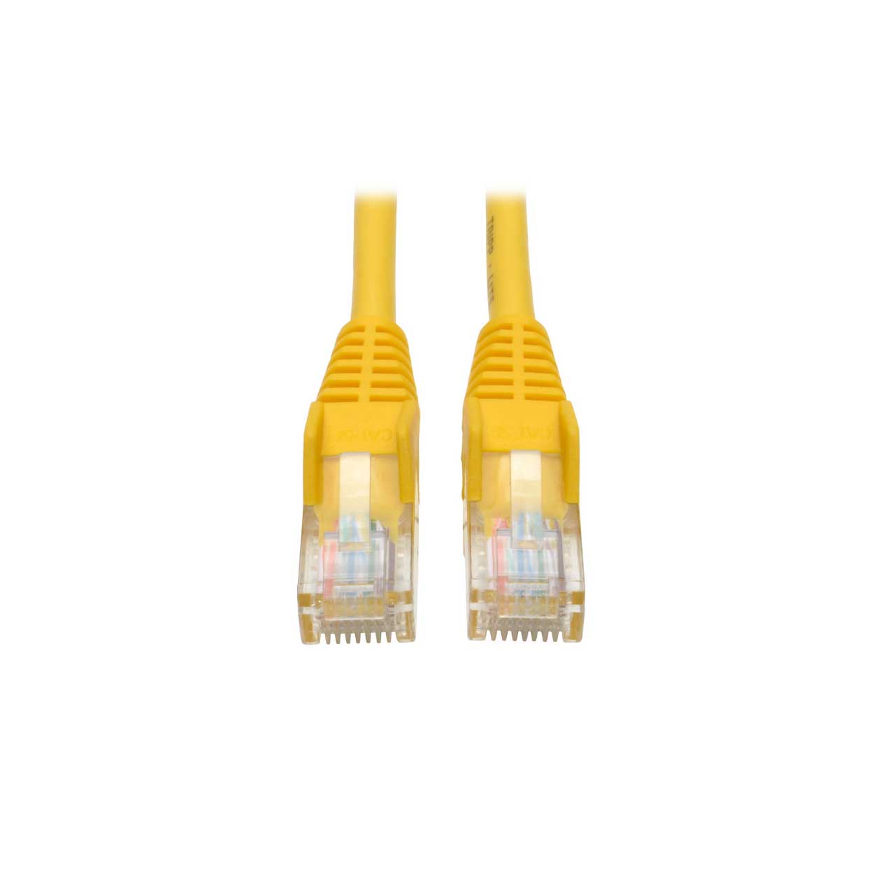 Tripp Lite's 3-foot Yellow snagless category 5e (Cat5e) patch cable has 2 snagless RJ45 molded male connectors featuring integral strain relief. The cable is manufactured from PVC 4-pair stranded UTP and is rated for 350MHz/1Gbps communication. All cables are offered in a variety of lengths and colors for all category 5 (Cat5) and 5e cabling needs. Standard, non-snagless category 5e patch cables are also available (N002-Series).