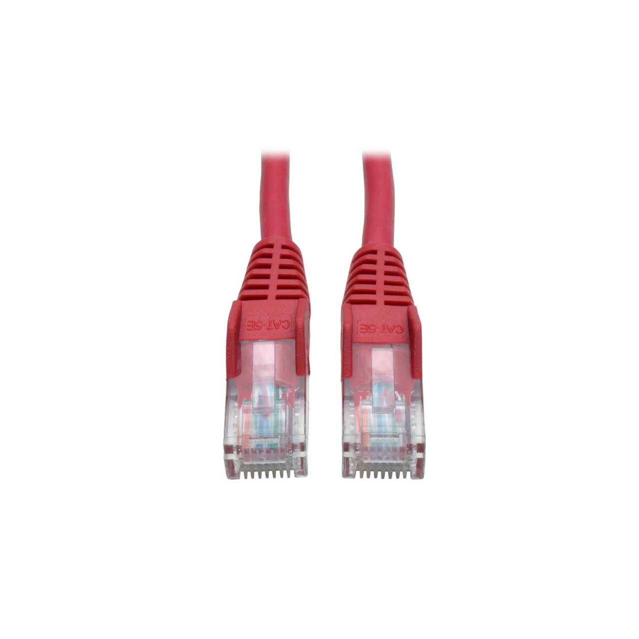 Tripp Lite's 5-foot Red snagless category 5e (Cat5e) patch cable has 2 snagless RJ45 molded male connectors featuring integral strain relief. The cable is manufactured from PVC 4-pair stranded UTP and is rated for 350MHz/1Gbps communication. All cables are offered in a variety of lengths and colors for all category 5 (Cat5) and 5e cabling needs. Standard, non-snagless category 5e patch cables are also available (N002-Series).