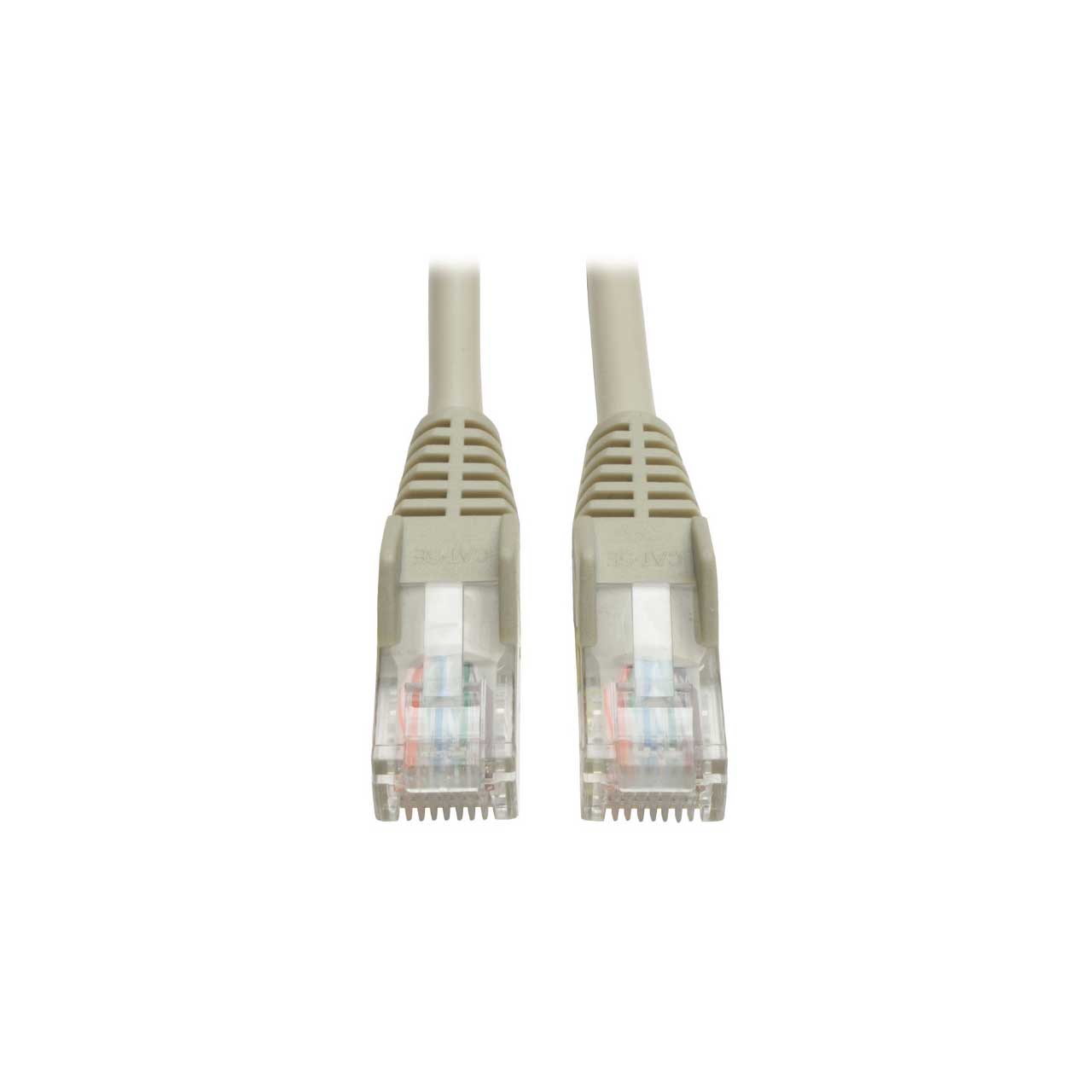 Tripp Lite's 12-foot Gray snagless category 5e (Cat5e) patch cable has 2 snagless RJ45 molded male connectors featuring integral strain relief. The cable is manufactured from PVC 4-pair stranded UTP and is rated for 350MHz/1Gbps communication. All cables are offered in a variety of lengths and colors for all category 5 (Cat5) and 5e cabling needs. Standard, non-snagless category 5e patch cables are also available (N002-Series).