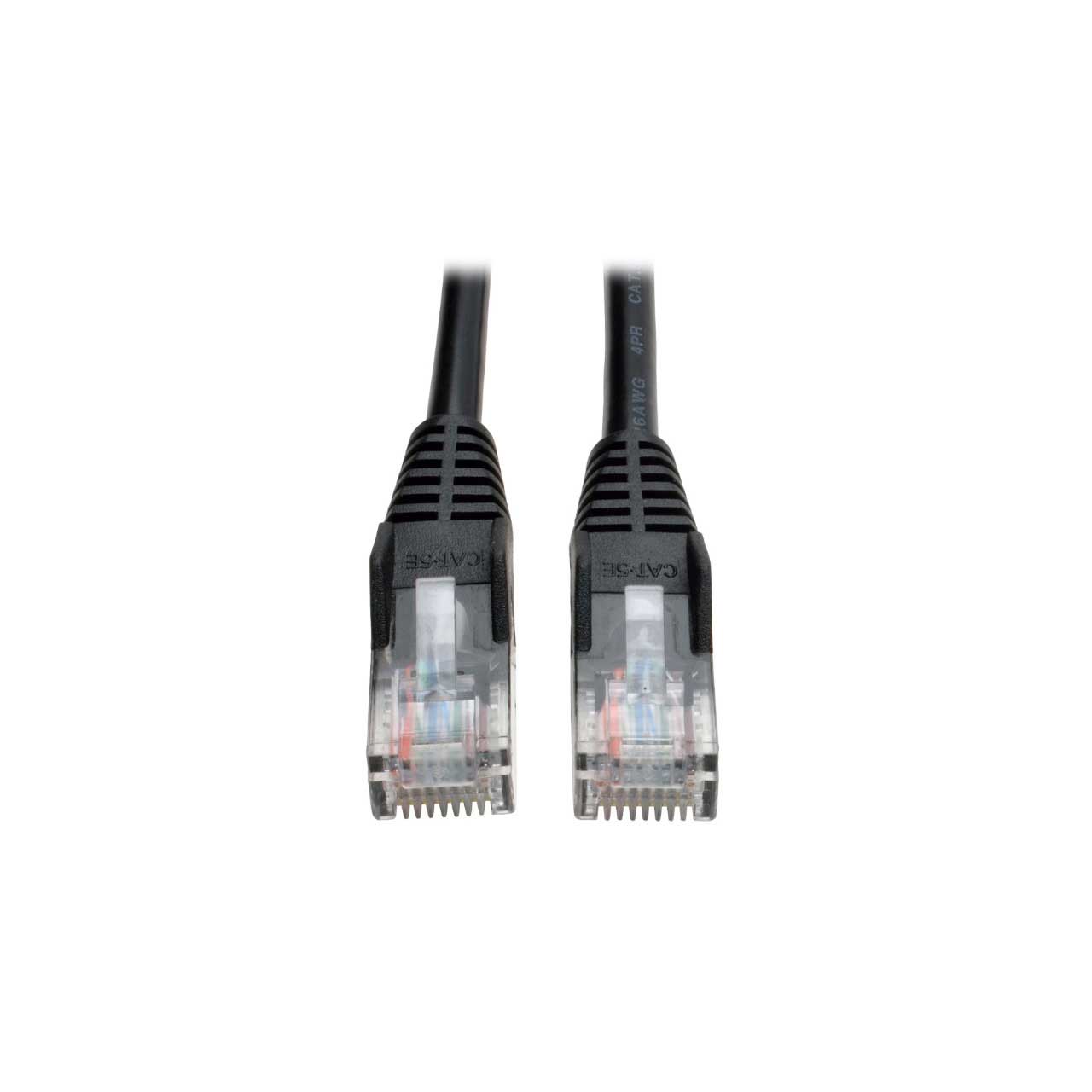 Tripp Lite's 14-foot black snagless category 5e (Cat5e) patch cable has 2 snagless RJ45 molded male connectors featuring integral strain relief. The cable is manufactured from PVC 4-pair stranded UTP and is rated for 350MHz/1Gbps communication. All cables are offered in a variety of lengths and colors for all category 5 (Cat5) and 5e cabling needs. Standard category 5e patch cables are also available.