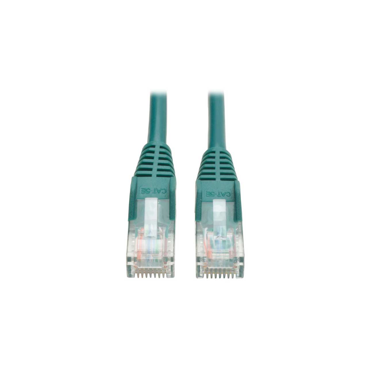 Tripp Lite's 14-foot Green snagless category 5e (Cat5e) patch cable has 2 snagless RJ45 molded male connectors featuring integral strain relief. The cable is manufactured from PVC 4-pair stranded UTP and is rated for 350MHz/1Gbps communication. All cables are offered in a variety of lengths and colors for all category 5 (Cat5) and 5e cabling needs. Standard, non-snagless category 5e patch cables are also available (N002-Series).