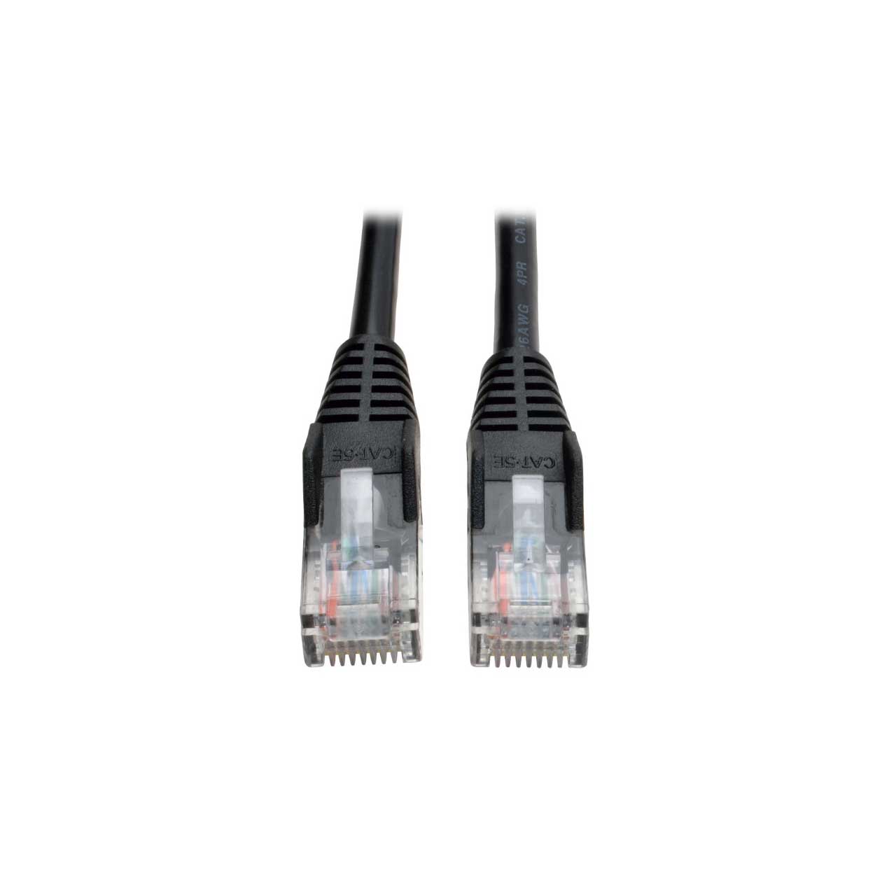 Tripp Lite's 15-foot Black snagless category 5e (Cat5e) patch cable has 2 snagless RJ45 molded male connectors featuring integral strain relief. The cable is manufactured from PVC 4-pair stranded UTP and is rated for 350MHz/1Gbps communication. All cables are offered in a variety of lengths and colors for all category 5 (Cat5) and 5e cabling needs. Standard, non-snagless category 5e patch cables are also available (N002-Series).
