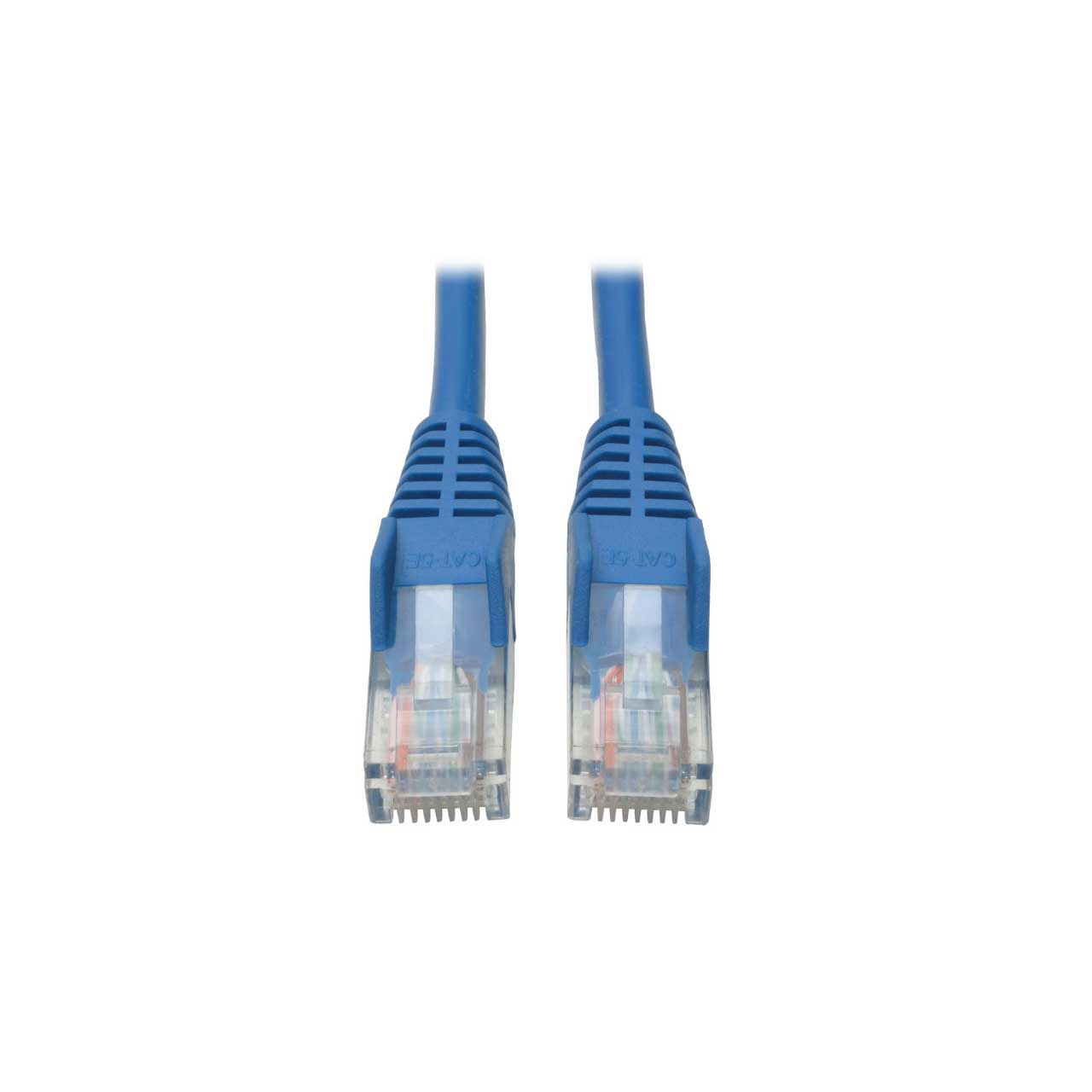 Tripp Lite's 100-foot Blue snagless category 5e (Cat5e) patch cable has 2 snagless RJ45 molded male connectors featuring integral strain relief. The cable is manufactured from PVC 4-pair stranded UTP and is rated for 350MHz/1Gbps communication. All cables are offered in a variety of lengths and colors for all category 5 (Cat5) and 5e cabling needs. Standard, non-snagless category 5e patch cables are also available (N002-Series).