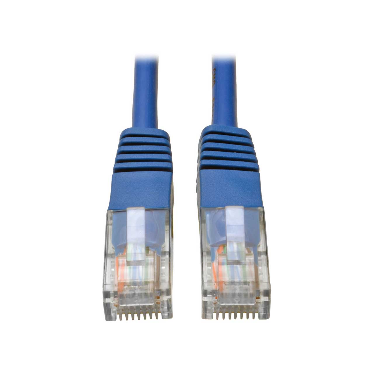 Tripp Lite's category 5e (Cat5e) patch cable has 2 standard RJ45 molded male connectors featuring integral strain relief. The cable is manufactured from PVC 4-pair stranded UTP and is rated for 350MHz/1Gbps communication. Offered in a variety of lengths and colors for all category 5 (Cat5) and 5e cabling needs. Snagless category 5e patch cables are also available.