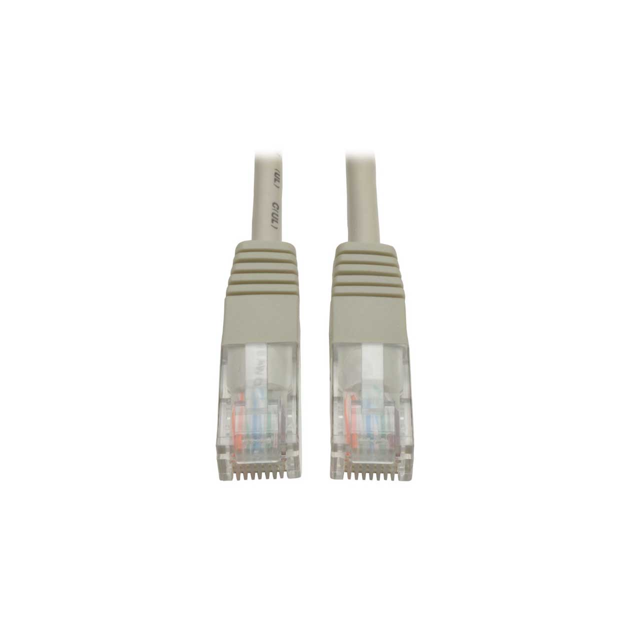 Tripp Lite's 10-foot gray category 5e (Cat5e) patch cable has 2 standard RJ45 molded male connectors featuring integral strain relief. The cable is manufactured from PVC 4-pair stranded UTP and is rated for 350MHz/1Gbps communication. All cables are offered in a variety of lengths and colors for all category 5 (Cat5) and 5e cabling needs. Snagless category 5e patch cables are also available.