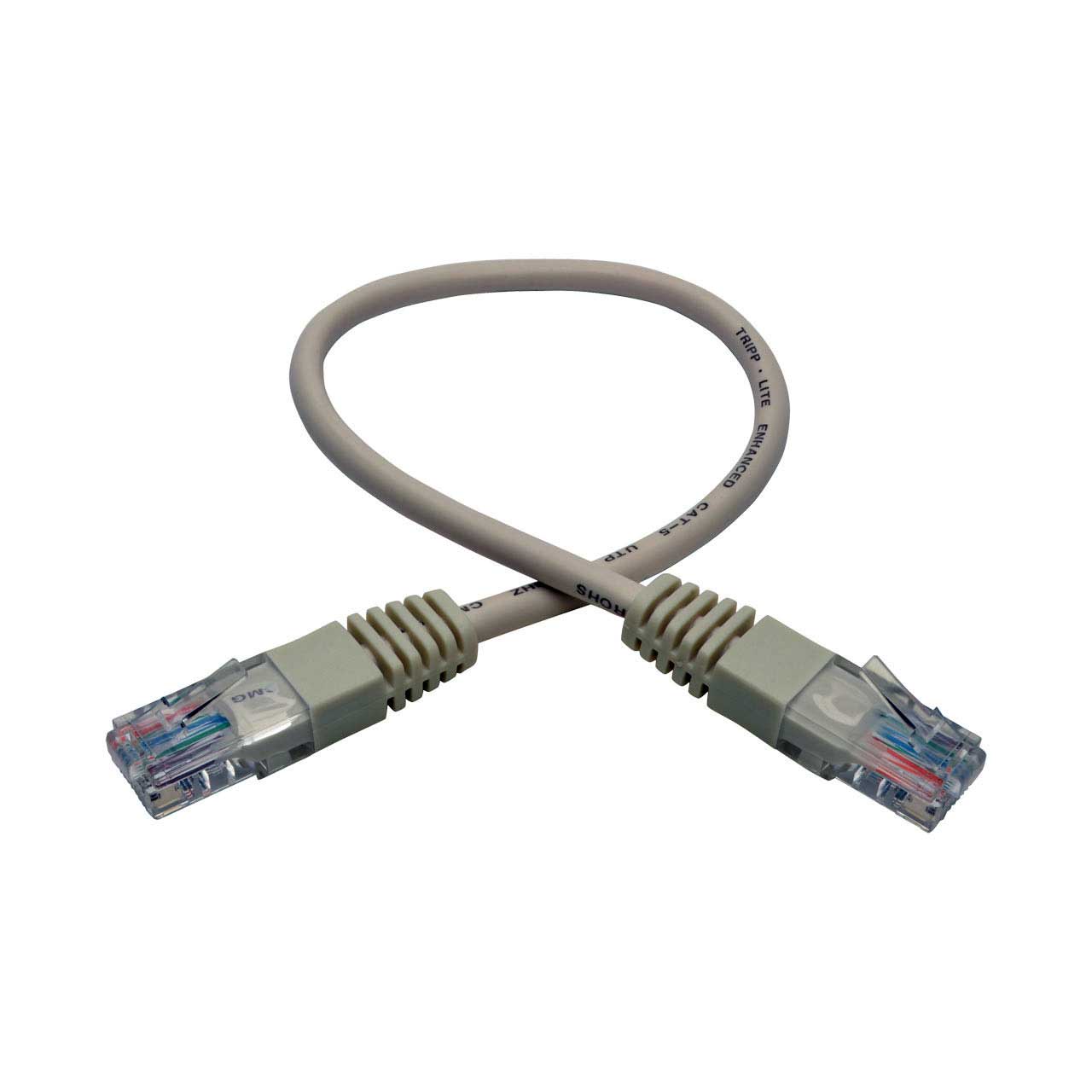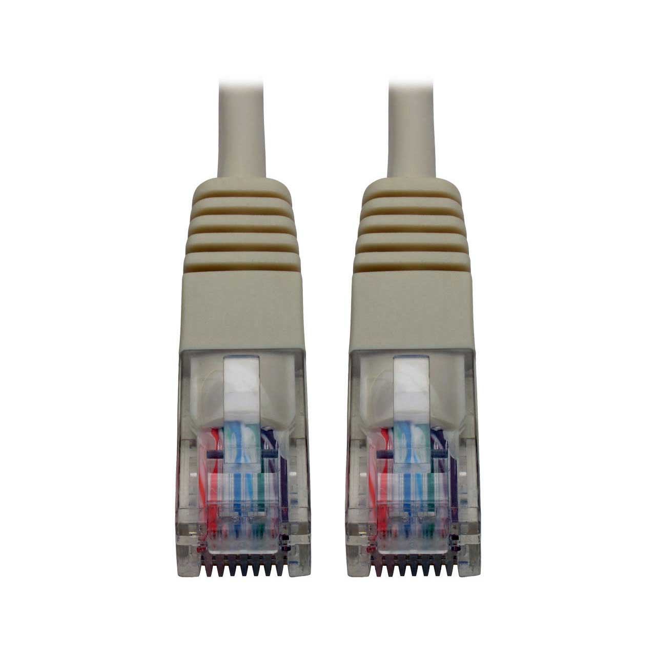 Tripp Lite's 14-foot White Category 5e (Cat5e) patch cable has 2 standard RJ45 molded male connectors featuring integral strain relief. The cable is manufactured from PVC 4-pair stranded UTP and is rated for 350MHz/1Gbps communication. All cables are offered in a variety of lengths and colors for all category 5 (Cat5) and 5e cabling needs. Snagless category 5e patch cables are also available.
