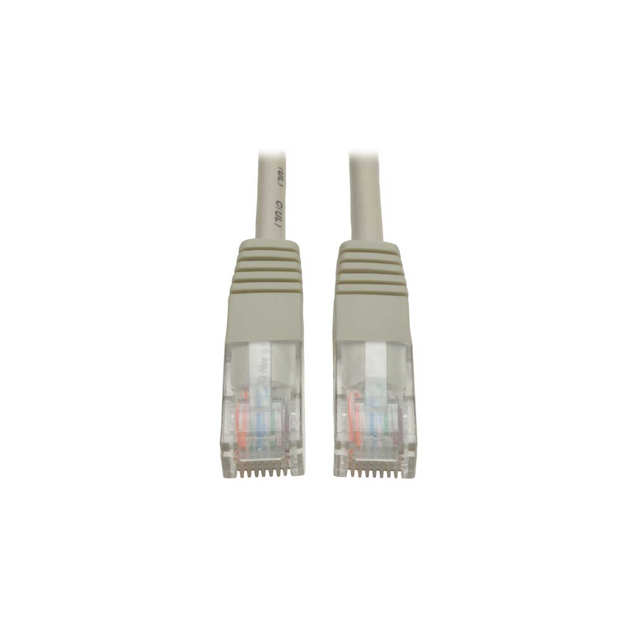 Tripp Lite's 25-foot gray category 5e (Cat5e) patch cable has 2 standard RJ45 molded male connectors featuring integral strain relief. The cable is manufactured from PVC 4-pair stranded UTP and is rated for 350MHz/1Gbps communication. All cables are offered in a variety of lengths and colors for all category 5 (Cat5) and 5e cabling needs. Snagless category 5e patch cables are also available.