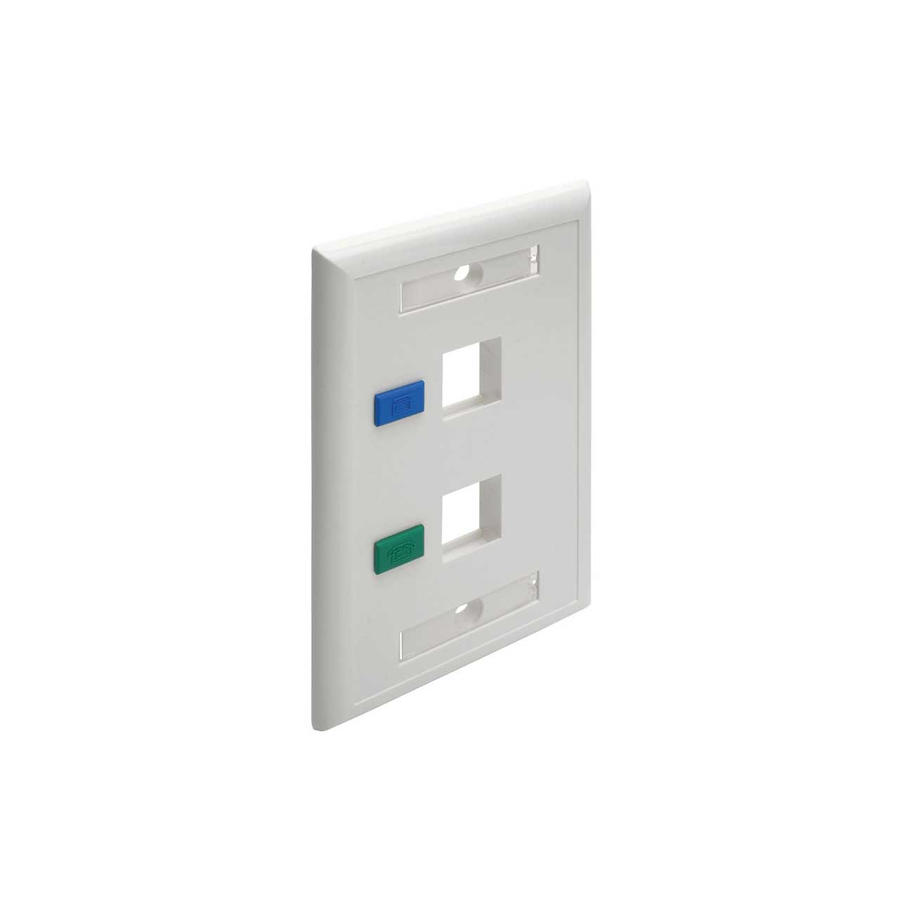 • Single Gang White Faceplate, 2 Keystone Cutouts