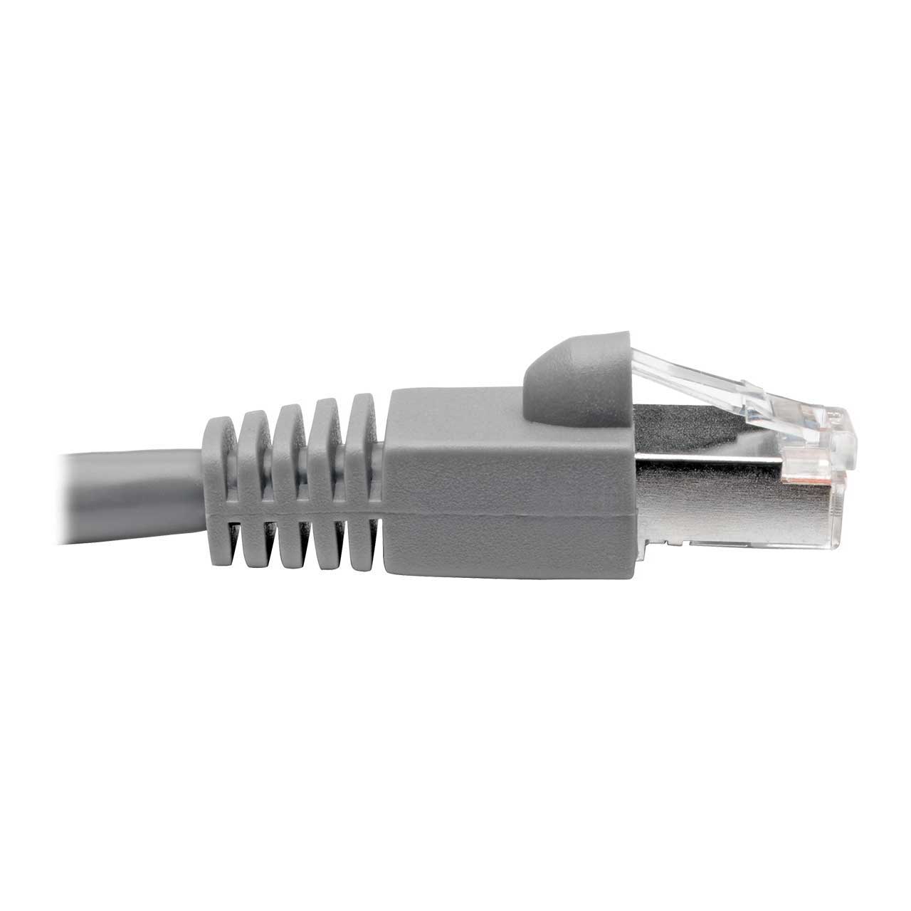 The RJ45 connectors' snagless design protects the locking tabs from being damaged or broken off during installation. The ends are shielded to minimize near-end crosstalk (NEXT) levels. Integral strain relief gives the N262 extra flexibility, reduces stress and helps the cable move freely without cracking or breaking loose from the connector.
