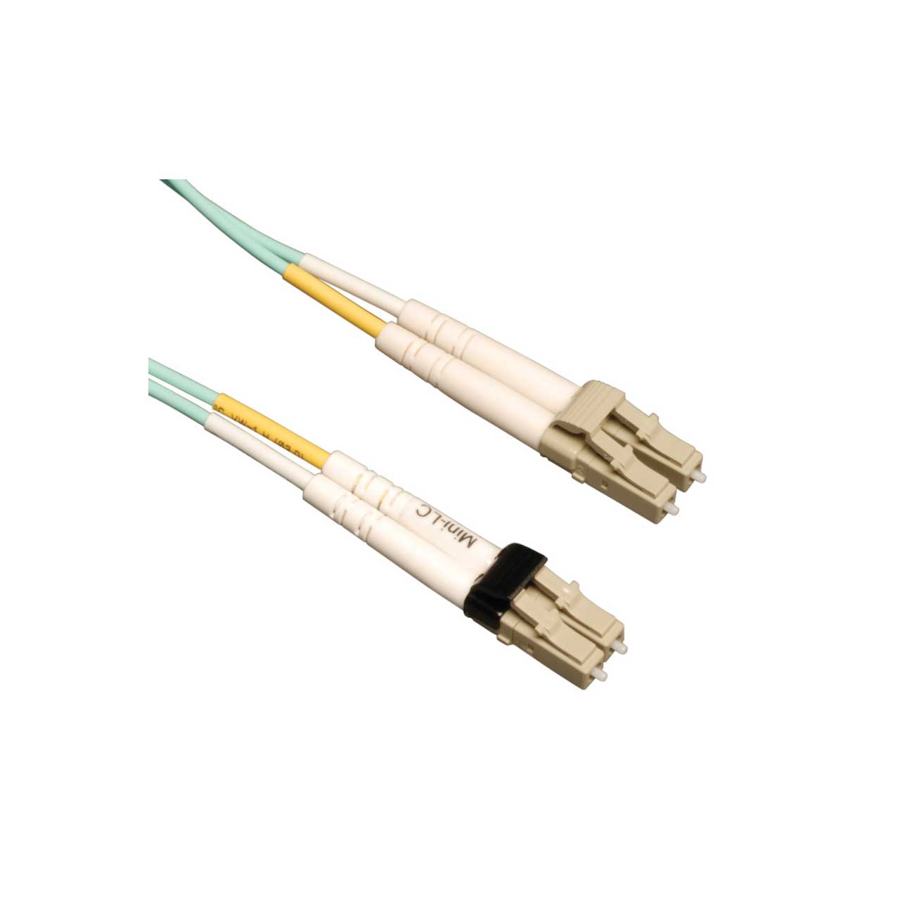 Tripp Lite introduces it's new, Mini-LC to LC, OM3 Laser-Optimized Multimode Fiber (LOMMF) "Aqua" cables, for use with 10Gb Ethernet applications, utilizing mini SFP transceivers, such as Brocade FC8-64 High Density 64-port Fibre Channel Blade. These new technology, 50/125um, mini-LC/LC Fiber Optic cables, provide nearly four times the bandwidth over conventional 62.5um multimode fiber, with performance rivaling that of Singlemode cable, at a much reduced cost.