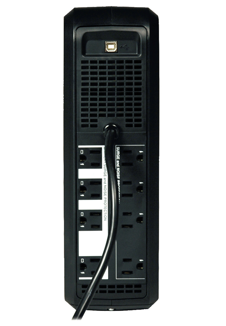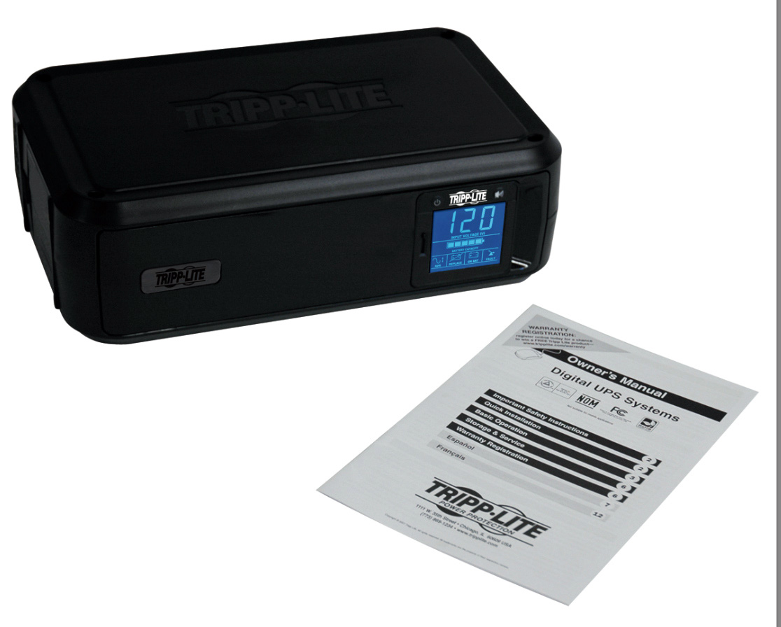Tripp Lite's OMNI700LCD Line-Interactive Digital UPS System offers voltage regulation, surge suppression and long lasting battery support for personal computers, home entertainment systems and media centers. Internal UPS circuits support entry level PCs for up to 50 minutes or individual VCR/DVR components for as long as 2.5 hours during power failures. Prevents data loss, viewing interruptions, lost recordings and loss of component programming. Automatic Voltage Regulation (AVR) circuits regulate brownouts as low as 89 volts back to usable levels without using battery power. 97% line-mode efficiency saves energy and reduces BTU heat output. Offers complete power protection in an attractive black tower configuration. Includes 4 battery-supported and surge-protected outlets, plus 4 additional surge suppression-only outlets for items not requiring battery support. USB port enables optional unattended system shutdown without data loss in the case of extended power failure. PowerAlert software available via free download from www.tripplite.com. HID-compliant USB interface enables integration with built-in power management and auto shutdown features of Windows and Mac OS X. Built-in audible alarm and large LCD front panel voltage display indicates line power status, battery power status, battery low/replace status and voltage boost operation. The LCD display includes a dimmer switch and can be rotated for easy viewing in any application. 700VA/420 watt power handling ability supports entry-level PCs, home entertainment systems, network workstations, audio/video components. Offers 3.7 minutes battery runtime with a full load of 700VA/420 watts and 11.4 minutes with a half load of 350VA/210 watts. Supports battery replacement via built-in access panel. $200,000 Ultimate Lifetime Insurance (U.S., Canada, and Puerto Rico only).