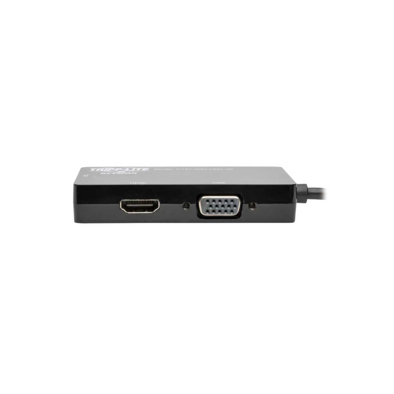 Tripp Lite's P137-06N-HDV allows you to convert your computer's Mini DisplayPort or Thunderbolt to a VGA, DVI or HDMI monitor as an all-in-one compact adapter. Ideal for Thunderbolt or Mini DisplayPort equipped laptops, Chromebooks, MacBooks, Ultrabooks and Microsoft Surface (Mac 10.11, Windows 10 compatible). This passive, plug-and-play adapter requires no external power, drivers or software, and supports video resolutions up to 1920 x 1200 and HD video resolutions up to 1920 x 1080 (1080p). Compatible with Thunderbolt 1 and 2 ports on MAC computers, such as MacBook Pro and MacBook