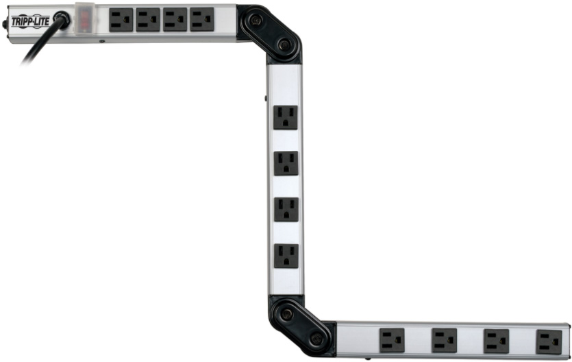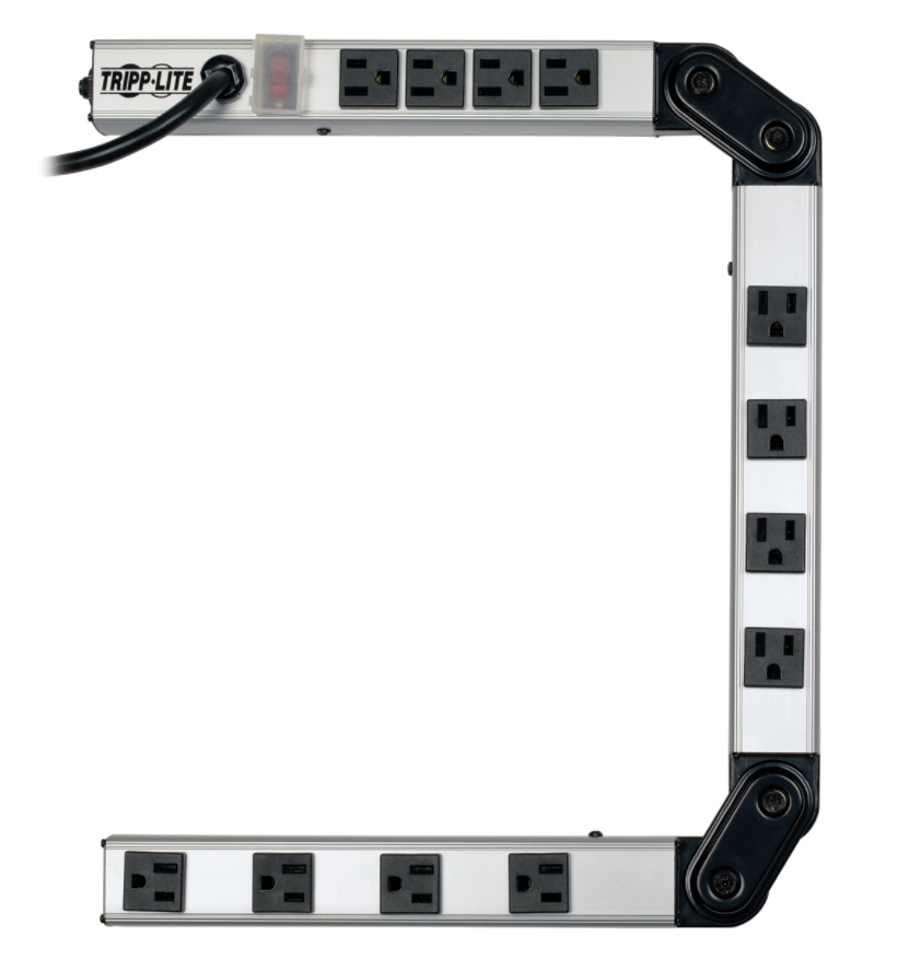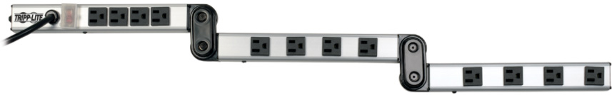 The PSF3612 provides a 12-amp, 120v power strip with 12 standard NEMA 5-15 outlets in a rugged, all-metal, mountable housing that folds in the middle. It allows for both vertical and horizontal mounting with additional mounting clips to ensure the pivots stay in place. The PSF3612 is ideal for a variety of uses including office, rack-mount, workbench, industrial and telecom applications. With a NEMA 5-15P, 15-ft. power cord, you don't have to install it next to outlets you already have; it can be mounted across the room and deliver reliable power where you need it most. With foldable dual pivots, the PSF3612 can go around corners, be used by more than 1 person, and fit in smaller spaces. A lighted and covered On/Off switch helps prevent accidental shut-offs, while a 15-amp circuit breaker guards against dangerous circuit overloads. Its sturdy all-metal extruded aluminum housing stands up to demanding network, laboratory or factory environments.