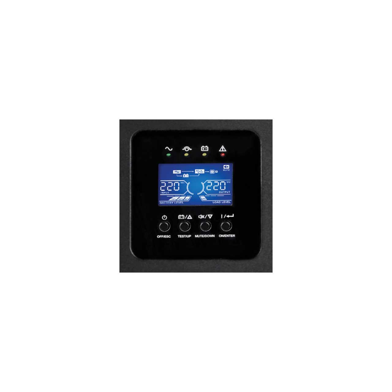 Intuitive LCD Interface Delivers Important Performance Information at a Glance: - The interactive front-panel LCD interface displays critical operating conditions and diagnostic data, including operating mode, input/output voltage, load, battery voltage, backup runtime and fault conditions. Four LEDs provide information about line, bypass, battery and fault status.