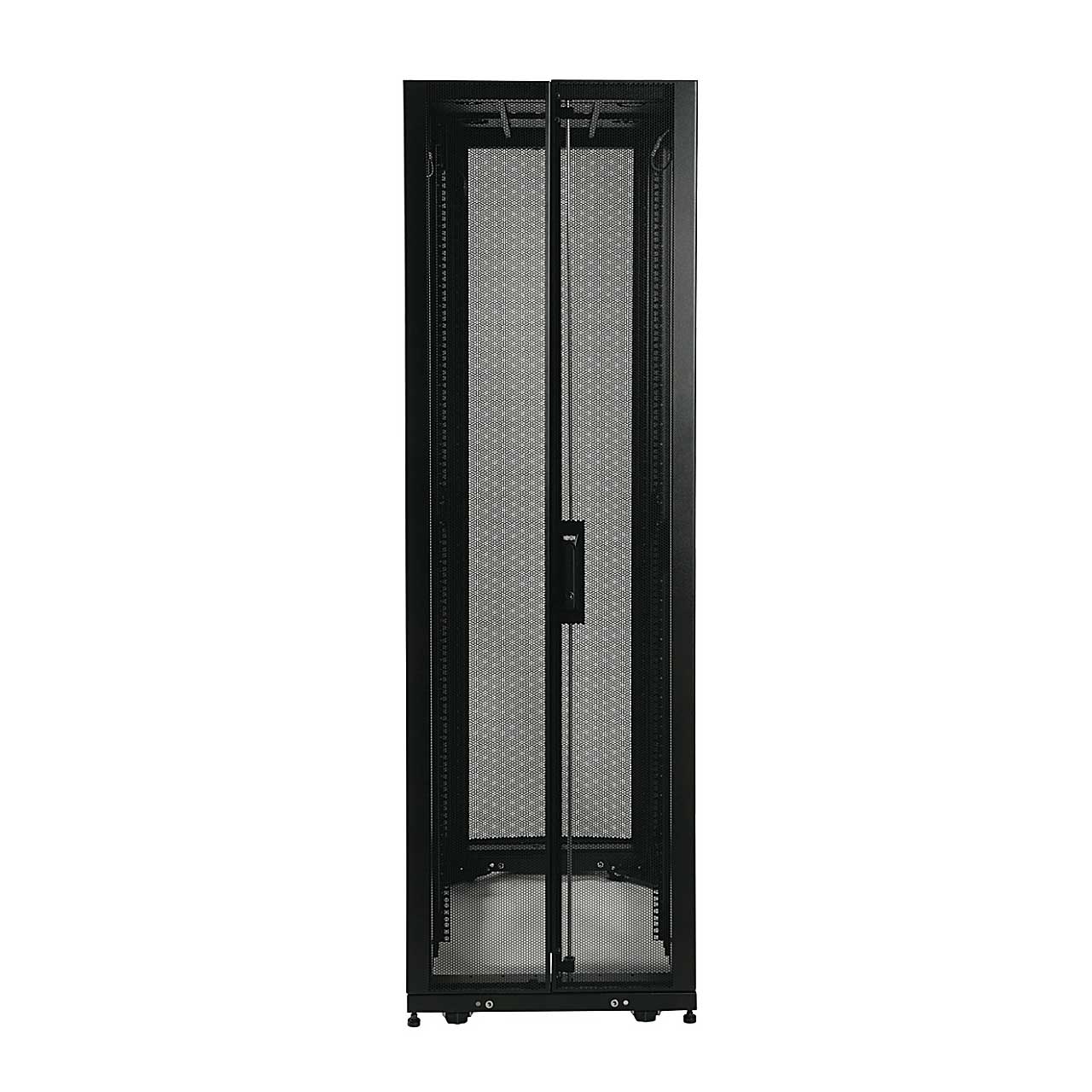 48U SmartRack Enclosure ships mounted on a special pallet that features additional reinforcement and shock-absorbing material. The pallet's protective cushion safeguards the enclosure and the precision components it contains during re-shipping. Reinforced pallets and reusable packaging provide the flexibility to fully configure rack enclosures in a centralized location and safely re-ship them to remote sites, saving significant service costs. They also allow the freedom to custom-configure enclosures with network and server hardware along with UPS systems, PDUs, KVM switches and a variety of other devices prior to final installation.SmartRack enclosures are designed for secure, high density server and networking applications in IT environments. Designed with provisions to integrate cooling, power distribution and cable management, SmartRack enclosures make ideal homes for mission-critical equipment. Vendor-neutral square hole/cage nut mounting for guaranteed compatibility with all EIA-310-D compliant 19" equipment. Enclosures ship fully assembled for rapid deployment and roll into place on heavy-duty casters. Toolless mounting slots allow quick installation of PDUs and vertical cable managers. Adjustable mounting rails include an easy-view depth index to eliminate time-consuming measurements. Lightweight modular doors and side panels provide safe, convenient service access. Integrated baying tabs facilitate combining enclosures in rows for standard data center baying applications. SmartRack enclosures hold up to 3000 lbs and support cooling, cable management, power distribution and monitoring features that keep critical servers and network equipment operating nonstop. Perforated doors permit massive front to rear airflow that exceeds servers manufacturer requirements. Enclosures are fully compatible with hot-aisle / cold-aisle data center configurations.