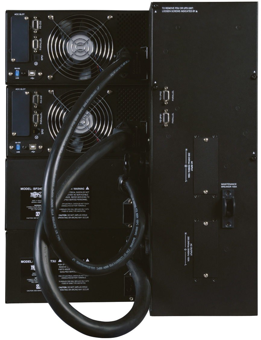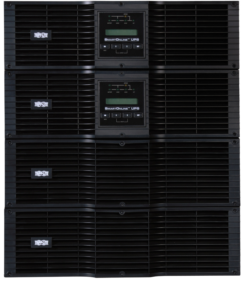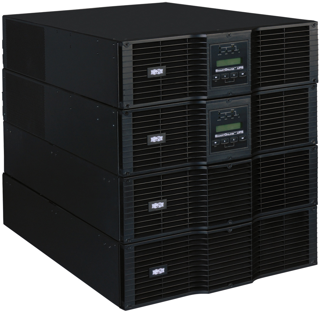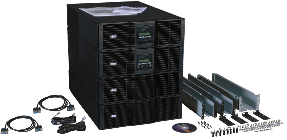 Tripp Lite SU16KRTHW 16,000VA / 16kVA / 14,400 watt online, double-conversion UPS system offers complete power protection for critical server, network and telecommunications equipment in a 12U rack/tower configuration. This system delivers complete N+1 redundancy when used at loads up to 8kVA, and non-redundant operation at loads between 8 and 16kVA. Fault-tolerant auto-bypass prevents unexpected service interruptions during UPS overload or internal fault conditions. Included parallel PDU with manual bypass switching enables hot-swappable replacement of all major UPS system components in both N+1 and combined operating modes. Enhanced availability, fault tolerance and simple hot-swap replacement options make this UPS ideal for advanced networking applications in data centers, computer rooms, network closets and rugged industrial locations.