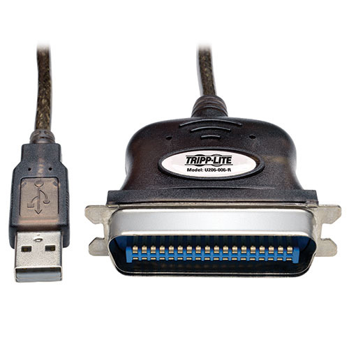 Tripp Lite's USB to Parallel Printer Cable (USB 1.1) provides the convenience of connecting a parallel device such as a printer to a computer through the USB port. Just plug it in and the driver installs automatically; no need for a software CD. Perfect for systems without a parallel port or when the existing parallel port is needed for another device. The 10 foot. cable features nickel-plated connectors and gold-plated copper contacts for superior conductivity. The cable is manufactured with molded connectors and integral strain relief for extra durability and long life. Double shielding provides maximum EMI/RFI protection. USB-A male to Cent36 male.