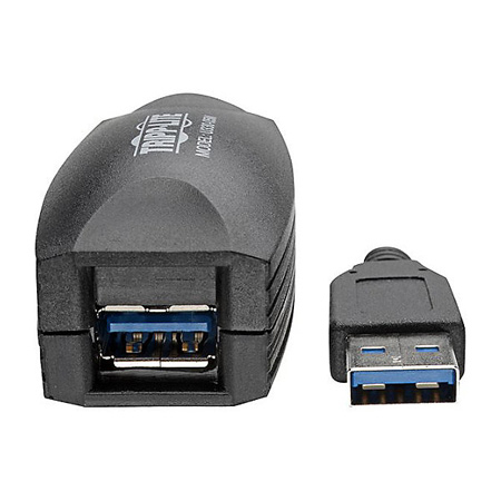 Tripp Lite's U330-05M 16-ft. USB 3.0 active extension cable is a bus powered extension cable that can be used to increase the length of a device cable without the worry of signal loss and potential performance problems. Increase the extension distance to 33 ft. by connecting two U330-05M together. USB limits a cable's length to 16ft. Any length above 16 feet requires the use of an active cable such as this one. This cable has a signal booster built in. The cable must be plugged directly into a USB port (either on the PC or a hub). Use a standard 6' 10' or 15' USB 3.0 A-B cable to reach the desired distance. The U330-05M provides up to 770mA of power to the connected device. If your device requires more than 770mA of power, an external power supply will be required for the connected USB device.