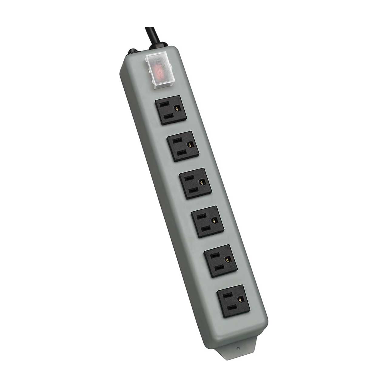The Waber-by-Tripp Lite UL24RA-15 Power Strip offers a convenient method of power distribution in workbench, wallmount or floor mount applications. Includes 6 NEMA 5-15R output receptacles with 1.625 inch center-to-center spacing, 15 foot AC line cord and keyhole mounting tabs for installation in a wide variety of applications. Right angle outlet orientation better accommodates large transformer plugs. Corded, multi-outlet strip reduces cabling clutter and enables the connection of multiple electrical devices to a single AC wall socket. Unfiltered electrical pass-through makes UL24RA-15 ideal for distributing alternate waveform UPS or generator power. Features rugged all-metal housing, lighted power switch with transparent guard to prevent accidental shutoff, 15 amp resettable circuit breaker and attractive blue/gray color scheme.