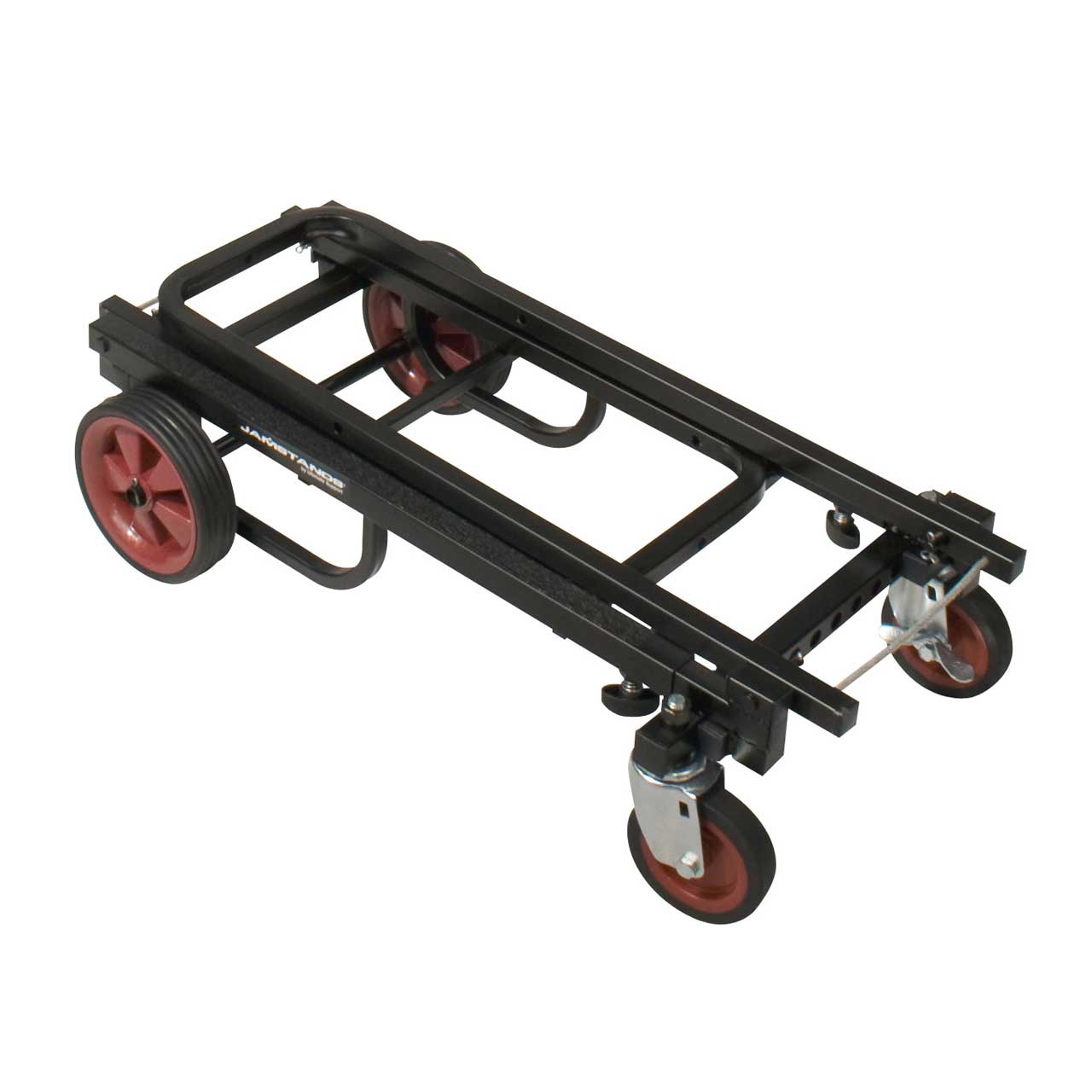 The JS-KC80 Karma Cart Series from JamStands by Ultimate Support redefines the concept that good things happen to hard working musicians and sound engineers! If you've ever hauled a heavy guitar amp, set of speakers, drum kit, or an 88-note keyboard, you know how wonderful the invention of the wheel can be. The Karma Cart Series offers not only a set of wheels and platform but it's a reconfigurable tool that transforms into eight different equipment carts and hand trucks with very little effort!