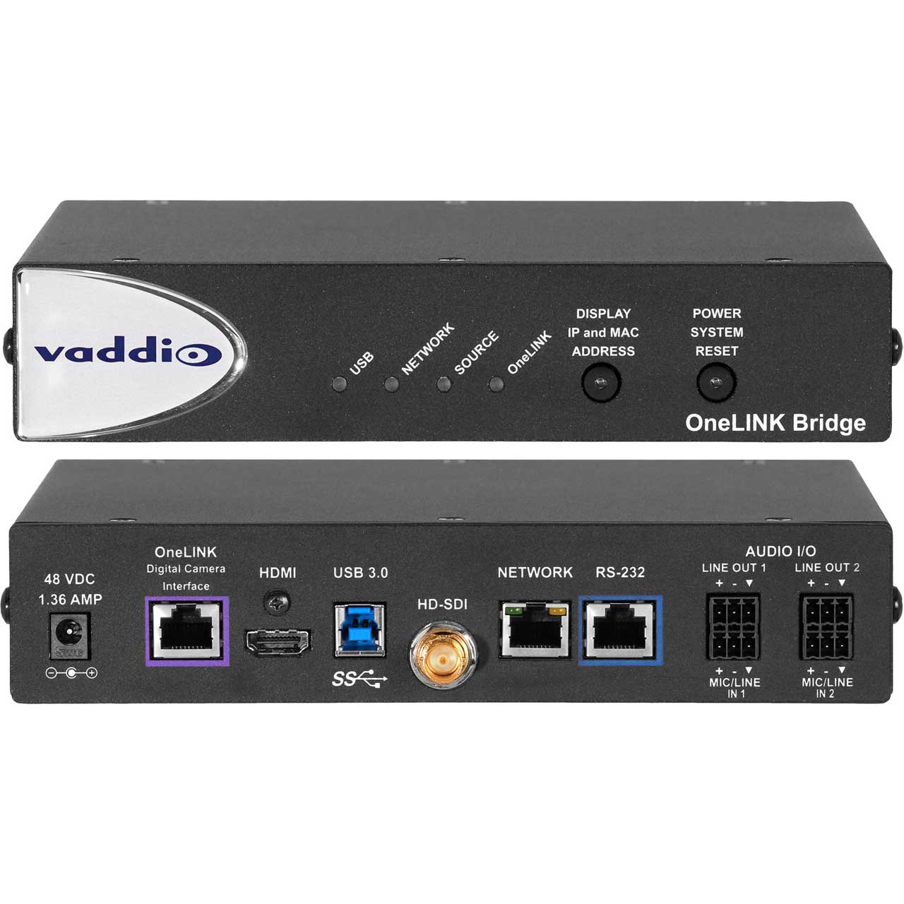 OneLINK Bridge connects a non-USB camera and audio source, and bridges to a USB stream for easy connection to USB-based conferencing applications such as Skype for Business, Google Hangouts, and Zoom.