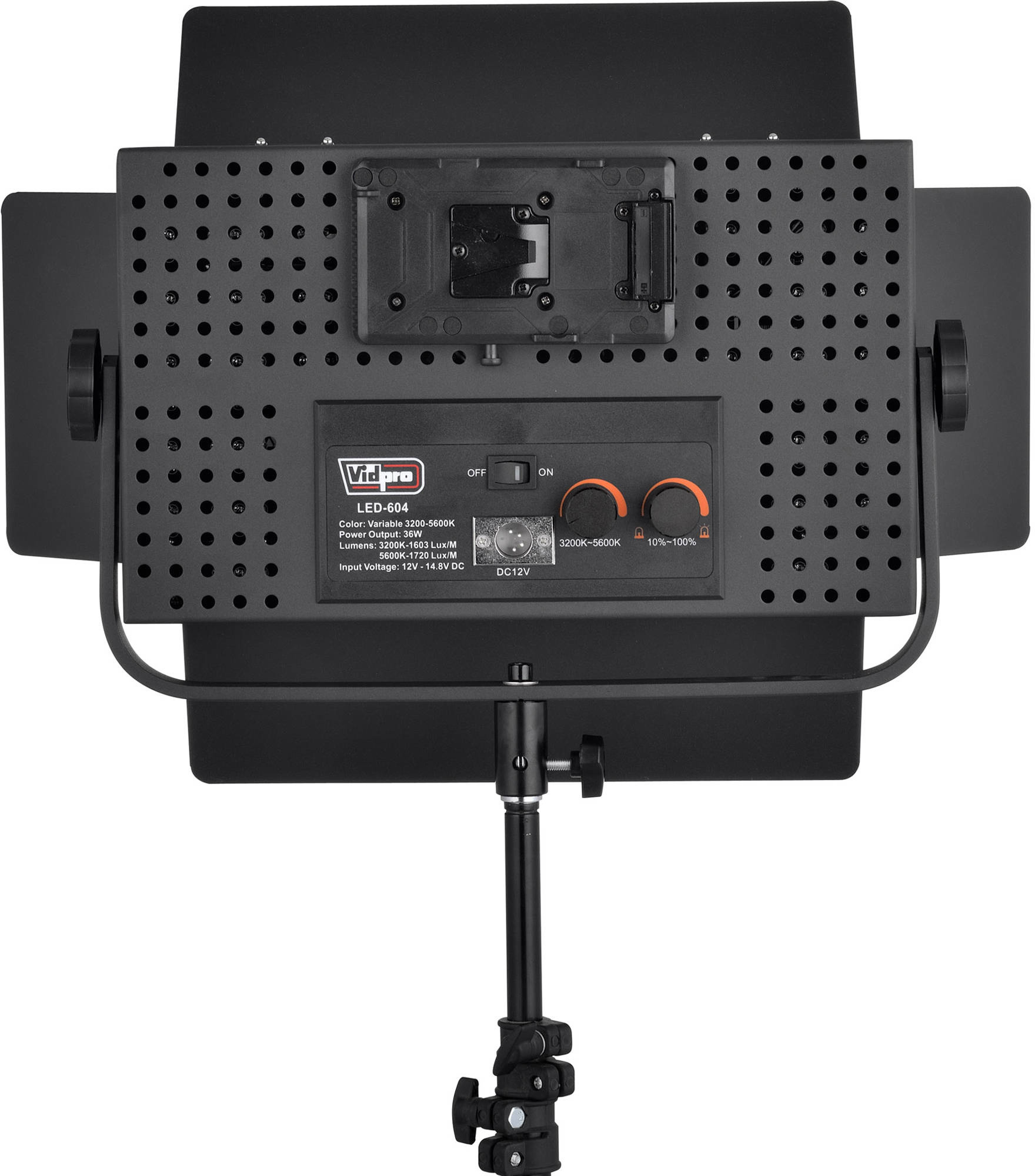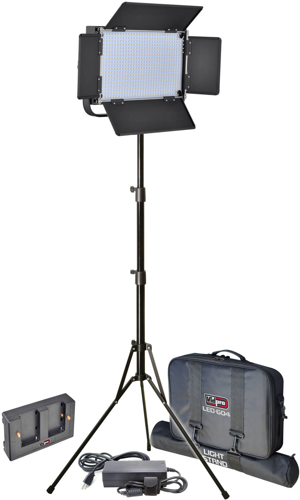 The Vidpro LED-604 is a professional studio lighting kit. The lighting kit is suitable for indoor and outdoor use with fully adjustable color and brightness controls. The LED-604 is lightweight and portable allowing you to set up and break down easily.