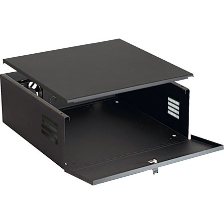 The VMP DVR-LB1 is designed specifically to secure your DVR from theft or tampering. The DVR-LB1 lockbox is constructed of powder-coated, formed steel, has an interlocking lift off lid, and a keyed lock front door. It also includes multiple cable knockouts to accommodate cable connections to the DVR, vents, and a fan with a power cord for proper ventilation of the DVR.