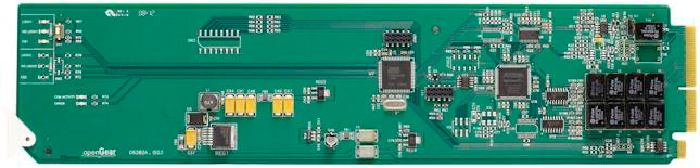 The Ward-Beck D6202B is a dual 1 x 4 AES distribution amplifier designed for use in 110 Ohm, balanced installations. It can provide four copies of each incoming signal when used with a T6303A rear assembly. It may also be used as a 1 x 8 AES distribution amplifier with SRC to provide up to eight outputs that are sample rate converted. For high density applications when used with the T6403A up to twenty 1 x 4 AES DA's with SRC can be provided in a single two rack unit frame. The D6202B supports audio sampling frequencies from 30kHz to 192 kHz. Cable equalization and reclocking techniques enable the D6202B to recover the incoming digital audio signal reliably. The D6202B is housed in the openGear OG3-FR-C series frames and can be configured and monitored through DashBoard.