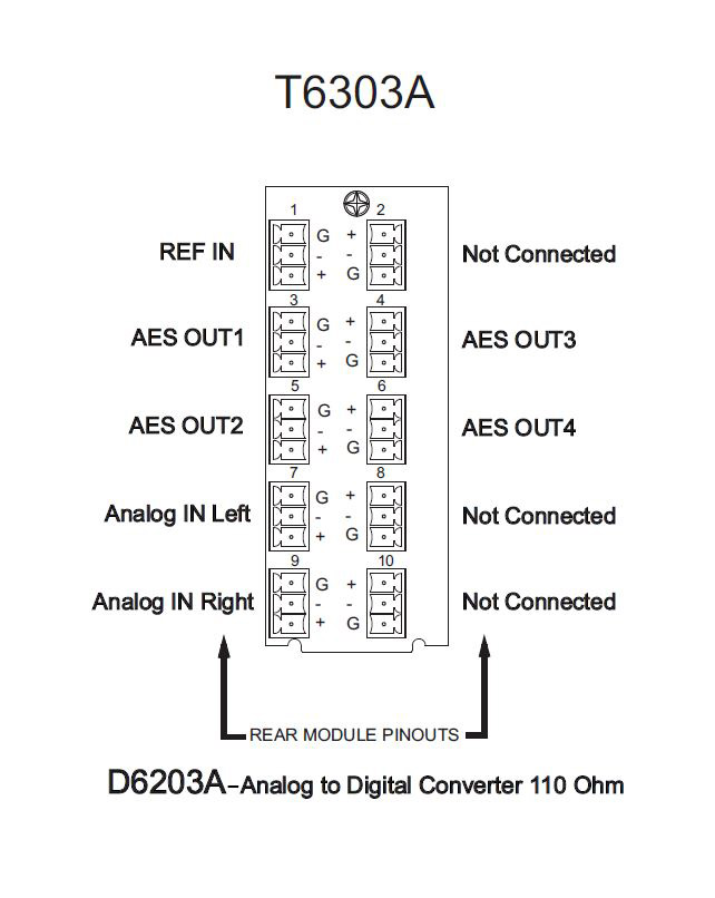 Ward-Beck T6303A openGear Single Card Analog to Digital Audio Converter 110 Ohm 10 3-Pin Terminal Block Rear Module