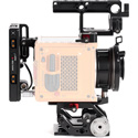 Wooden Camera 280200 Battery Slide Pro Gold Mount (RED® KOMODO™) attaches to the camera-left, BP-9 battery slot and powers the camera using a right angle LEMO compatible connector. Thumbscrew can be loosened to tilt and slide the plate as needed.