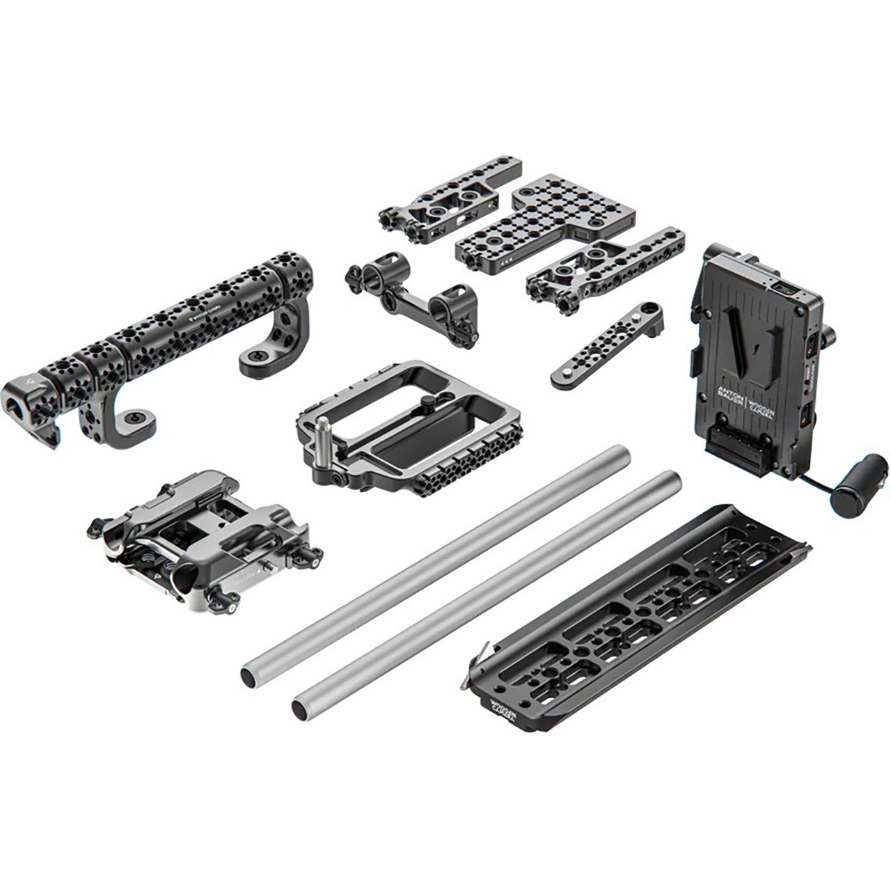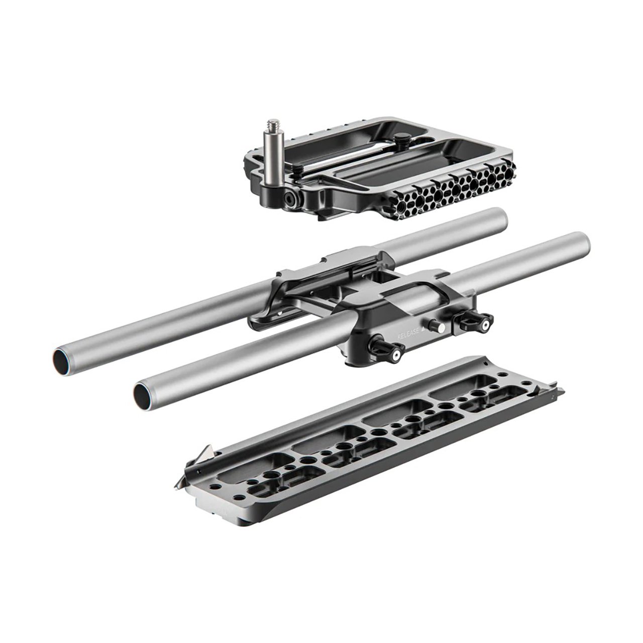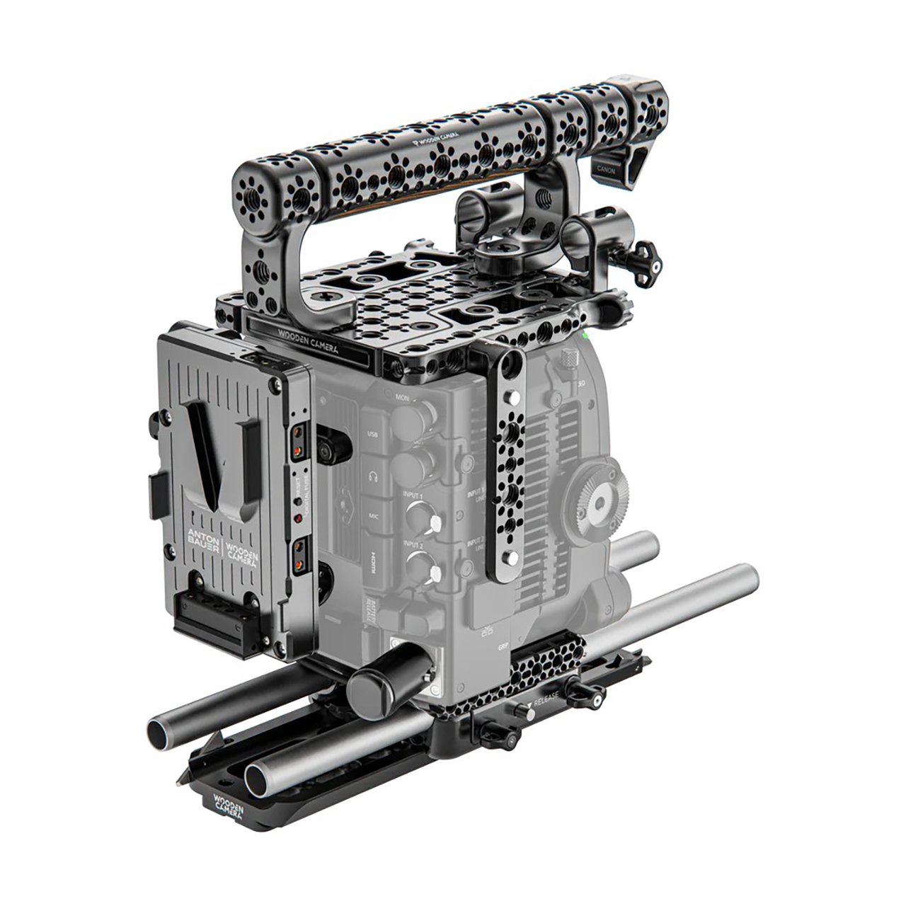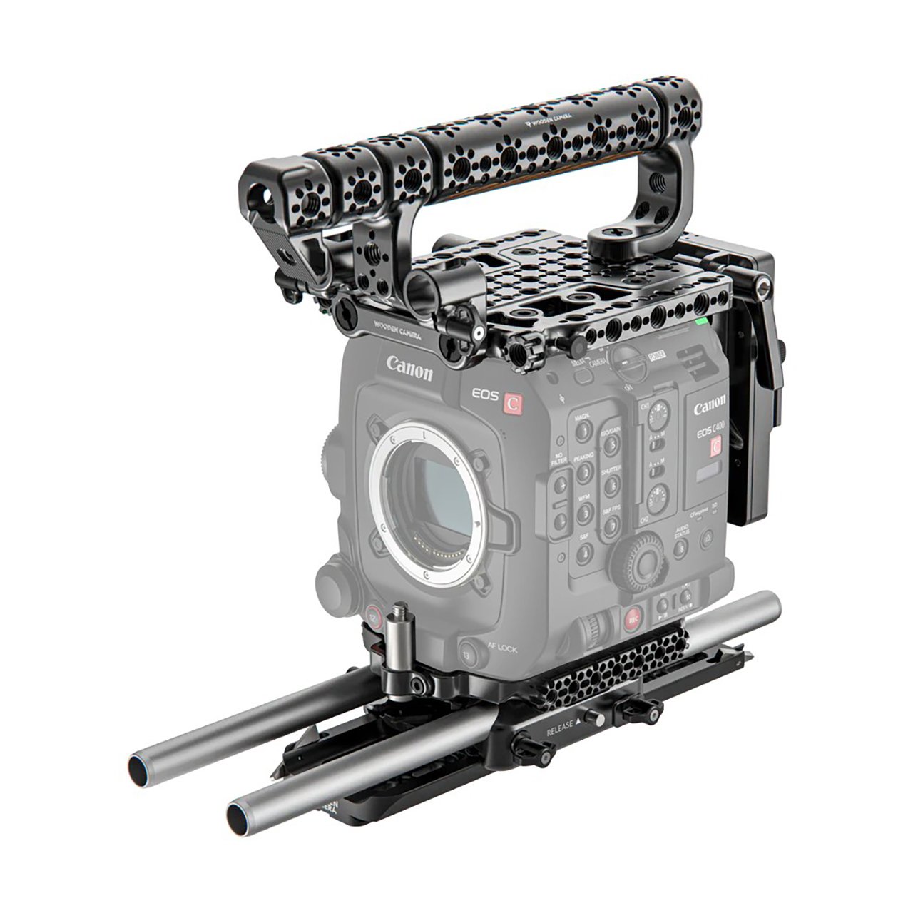 Wooden Camera K10032 Elite Accessory System for Canon EOS C400 maximizes the camera's on-set capabilities with abundant mounting points for endless accessory configurations. This cage system contains an ARCA Base Plate and Riser System that positions the camera at the appropriate optical height for mounting accessories and allows for quick setup transitions. The Riser Plate can be used alone with the ARCA Shoulder Pad or ARCA Steadicam Plate; the Base Plate is required for tripod or dovetail systems.