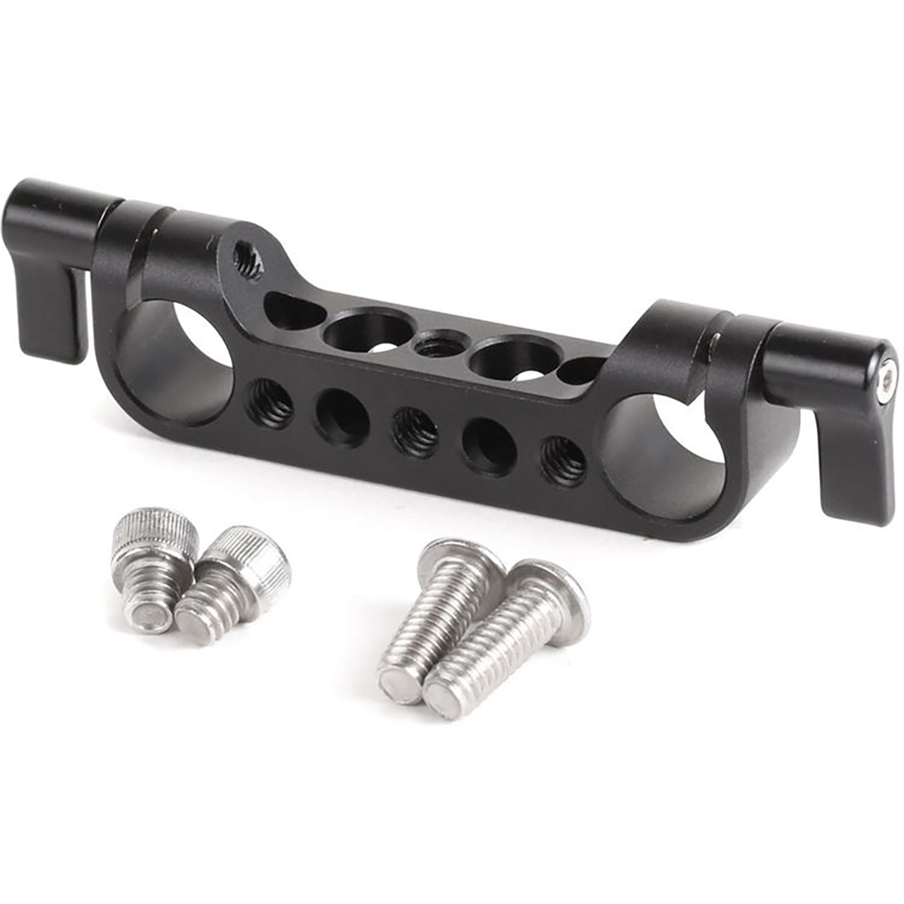 The Wooden Camera WC-150200 15mm Rod Clamp attaches to 15mm rods to add 1/4"-20 screw-holes to your camera rig.