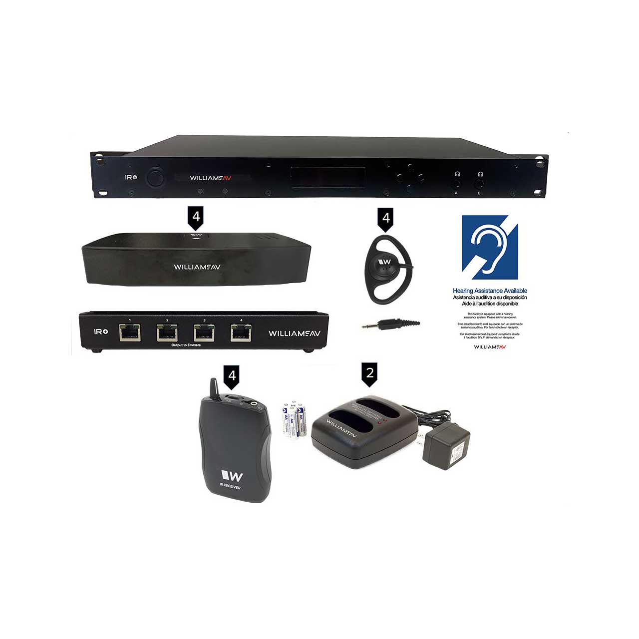 The WILLIAMS IR SY22 D IR + System uses invisible infrared (IR) light to broadcast speech or music to wireless infrared receivers. Listeners can also use their own personal electronic devices with Wi-Fi. The new IR + is designed to support those who want to use their own smartphones and headphones for a more discreet assistive listening experience. Simplicity is also available for those who want a more traditional assistive listening system with a dedicated IR receiver and headset. Venues no longer need to choose between providing IR or Wi-Fi assistive listening systems. IR + supports the iOS and Android WaveCAST Receiver Apps and the Wi-Fi Receiver-- in addition to all of the current and legacy Williams AV IR receivers. The system is designed to transmit high quality audio for hearing assistance and language translation applications. Because the system uses infrared light for transmission, it is not affected by interference from radio equipment and does not interfere with radio equipment. No FCC license or radio approval is required. The system can be used with microphones as a stand-alone system, or can be connected to other sound equipment. Infrared-systems generally cannot be used in direct sunlight because of sunlight's large amount of interfering infrared light