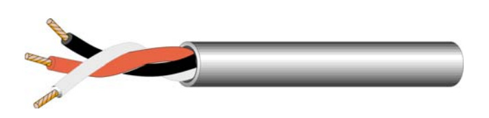 The 25236BGY1000 from West Penn is a 3-conductor, 14AWG, unshielded communication cable with stranded bare copper conductors (insulated) and an overall jacket.