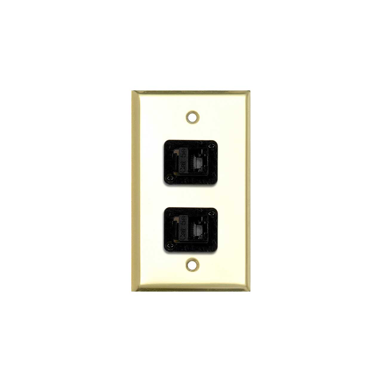 My Custom Shop WPBR-1153 1-Gang Brass Wall Plate w/ 2 CAT-5e RJ45 F-F Feedthrus
