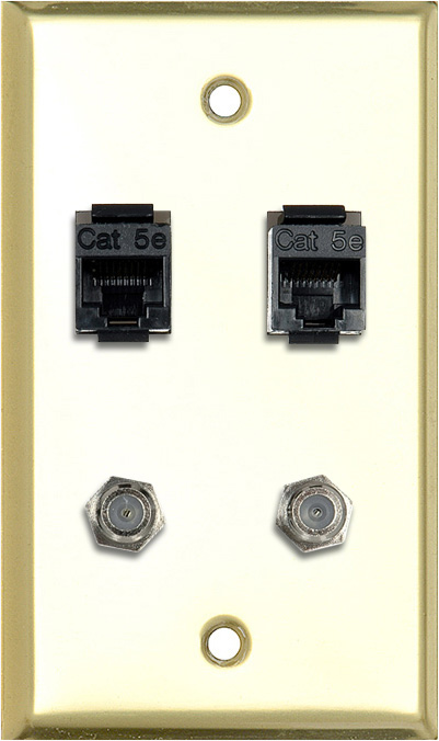 My Custom Shop 1-Gang Brass Wall Plate w/ 2- RJ45 Barrels & 2- F Coax Barrels