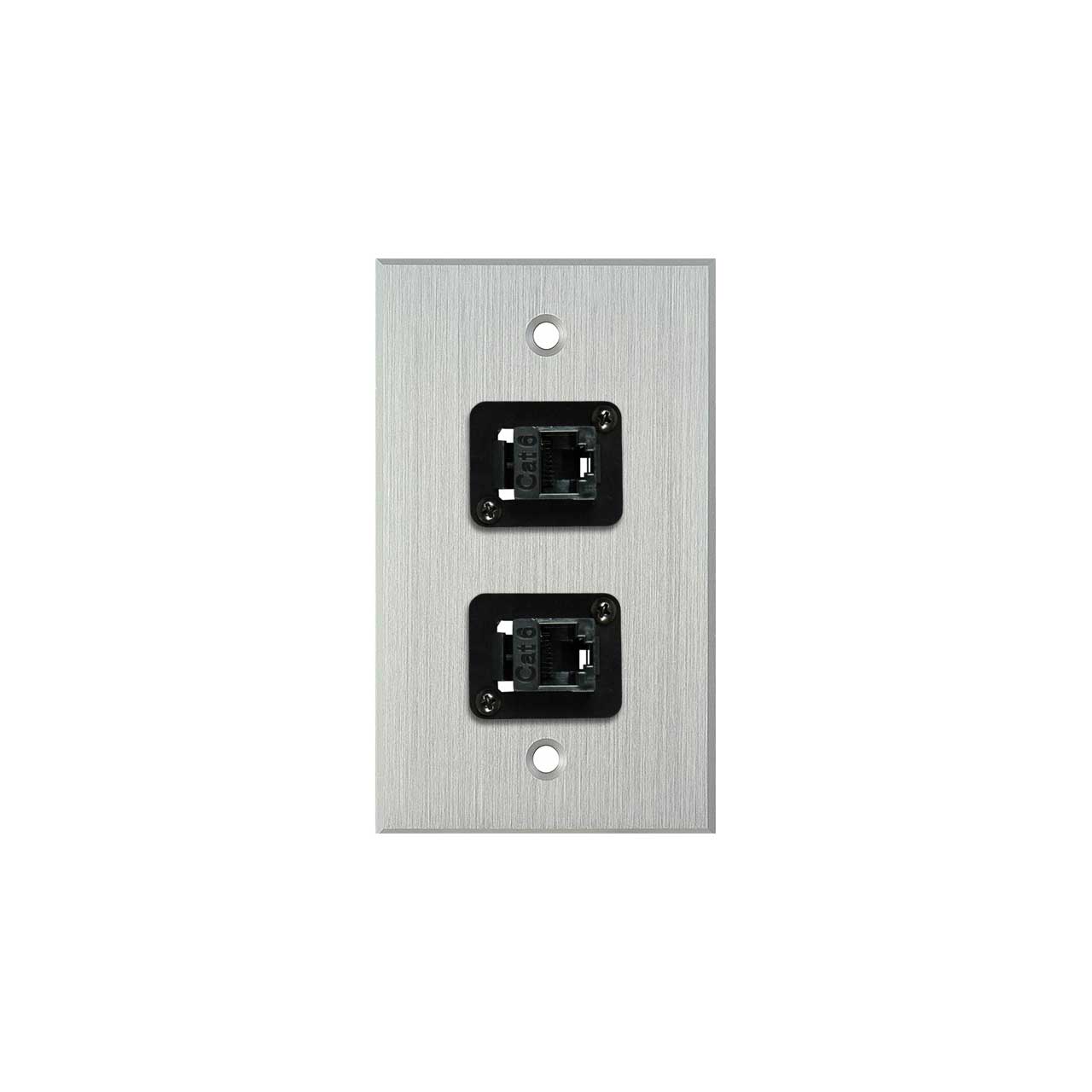 My Custom Shop WPCA-1153-6E 1-Gang Clear Anodized Wall Plate w/ 2 CAT-6 RJ45 F-F Feedthrus