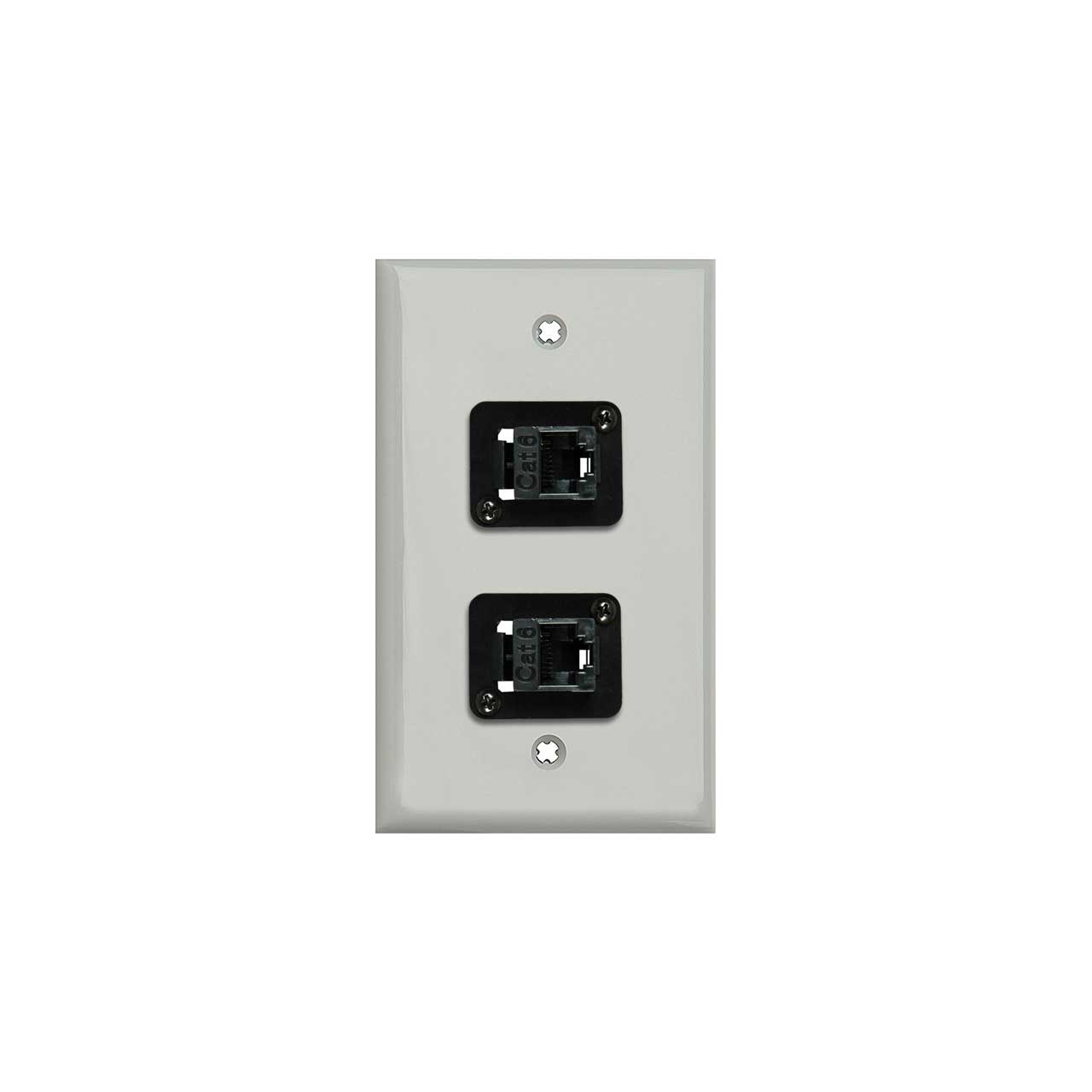 My Custom Shop WPLG-1153 1-Gang Gray Lexan Wall Plate w/ 2 CAT-6 RJ45 F-F Feedthrough