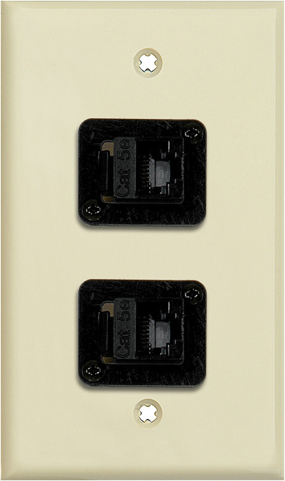 My Custom Shop 1-Gang Ivory Lexan Wall Plate w/ 2 CAT-5E RJ45 F-F Feedthrough