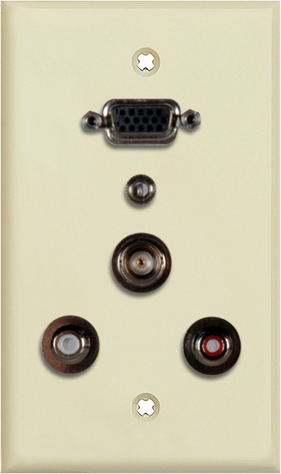 My Custom Shop 1-Gang Ivory Lexan Wall Plate w/ 15-Pin HD Female Barrel /2 RCA Barrels/1 Mini Barrel/1 BNC