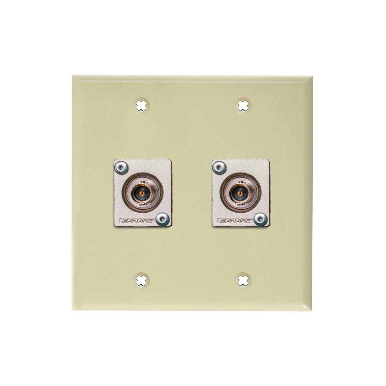 My Custom Shop WPLI-2107 2-Gang Ivory Lexan Wall Plate with 2 Canare BCJ-JRUK 12G-SDI Recessed BNC Barrels