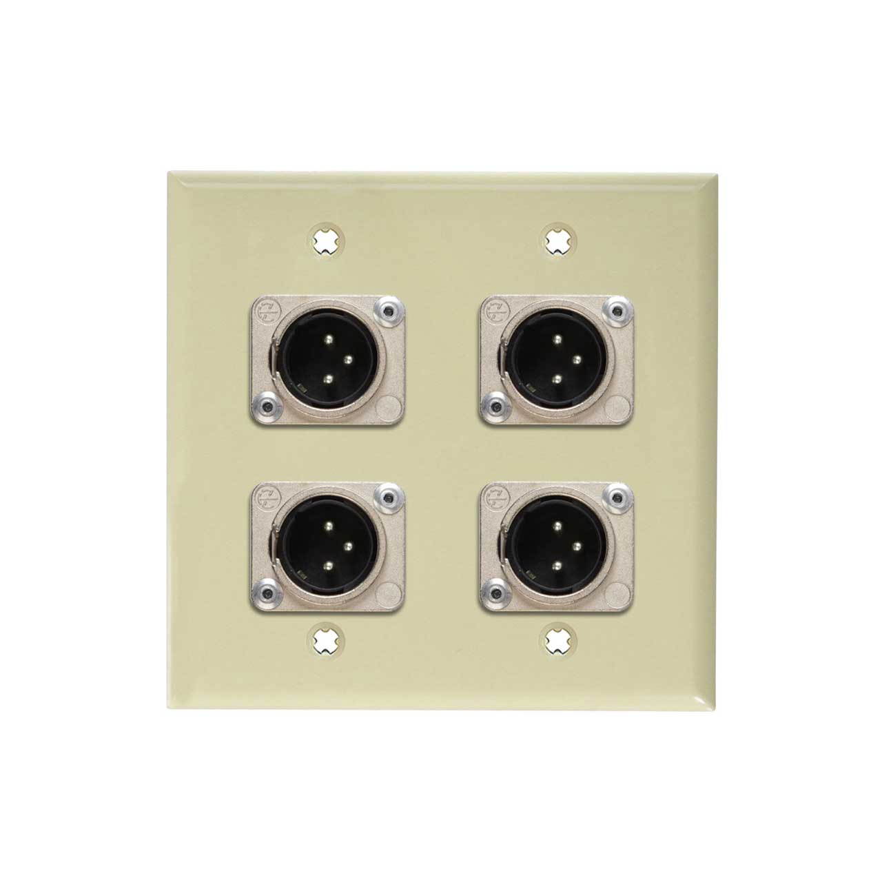 My Custom Shop WPLI-2109 2-Gang Ivory Lexan Wall Plate w/ 4 NEUTRIK XLR 3-Pin Male Connectors