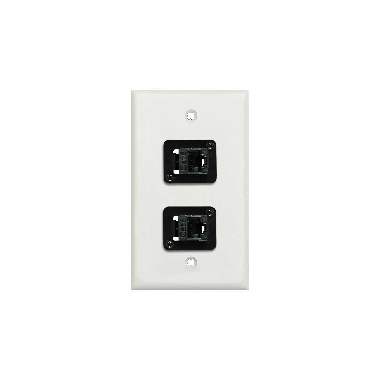 My Custom Shop WPLW-1153 1-Gang White Lexan Wall Plate w/ 2 CAT-6 RJ45 F-F Feedthrough