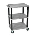 Whether you're looking for a basic AV cart or a multipurpose utility cart, the Luxor WT26C2E mobile cart is built to last. The two shelves are made from durable thermoplastic resin that won't chip, warp, scratch, rust or peel, and the car includes a locking steel cabinet to store equipment. They also have a textured surface and .25" retaining lip to help secure items. A push handle is molded into the top shelf for greater control and includes a built-in three-outlet electrical assembly while four heavy-duty casters provide smooth mobility across a variety of surfaces. Need to stabilize the cart? Simply activate the two locking brakes. Plus, it's proudly made in the USA.
