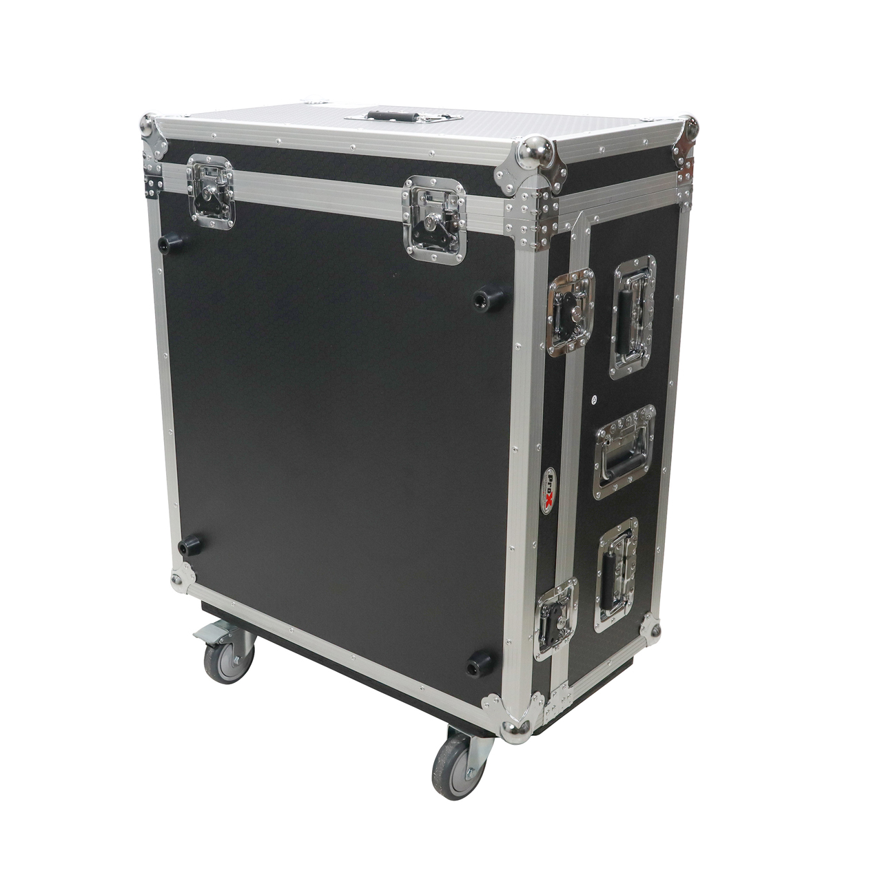 Additionally, the case incorporates 4" casters with rubber wheels, facilitating effortless mobility. With its intelligently engineered low front panel, the unit allows easy access to inputs, further enhancing the user experience.