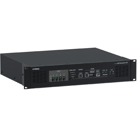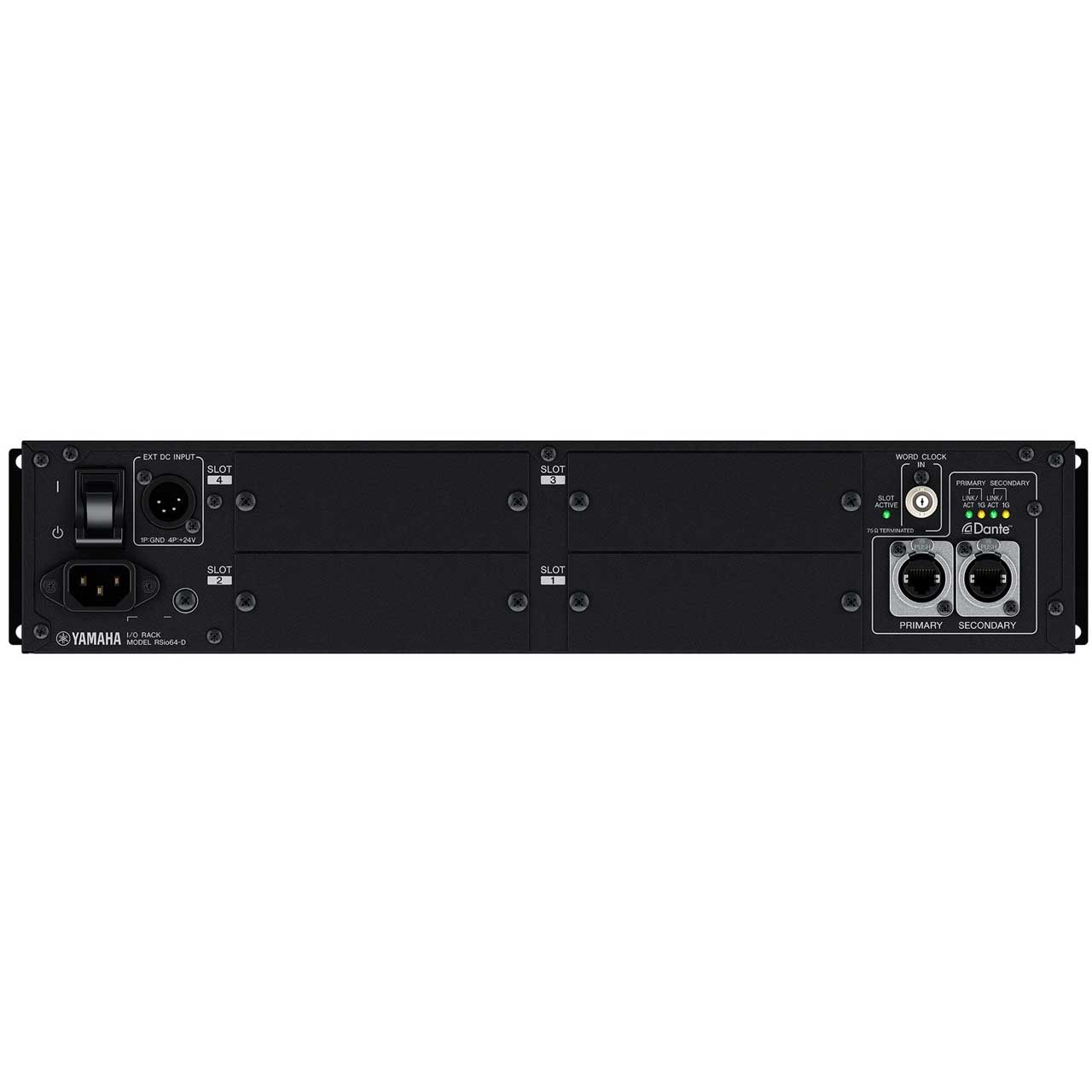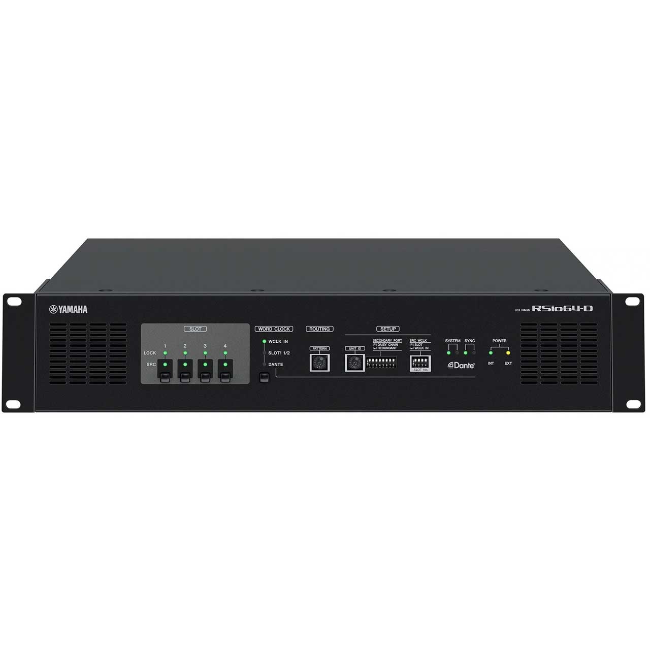 The Yamaha RSio64-D, the latest addition to the R series, is an audio interface that can convert between Dante and Mini-YGDAI formats for up to 64 inputs and 64 outputs; and also provides versatile routing capability. Four Mini-YGDAI card slots allow cards for a wide variety of input/output formats as well as processing functions to be connected to a Dante network for live sound, broadcast, recording, post production, and other applications. The RSio64-D also supports remote setup from CL and QL series consoles.